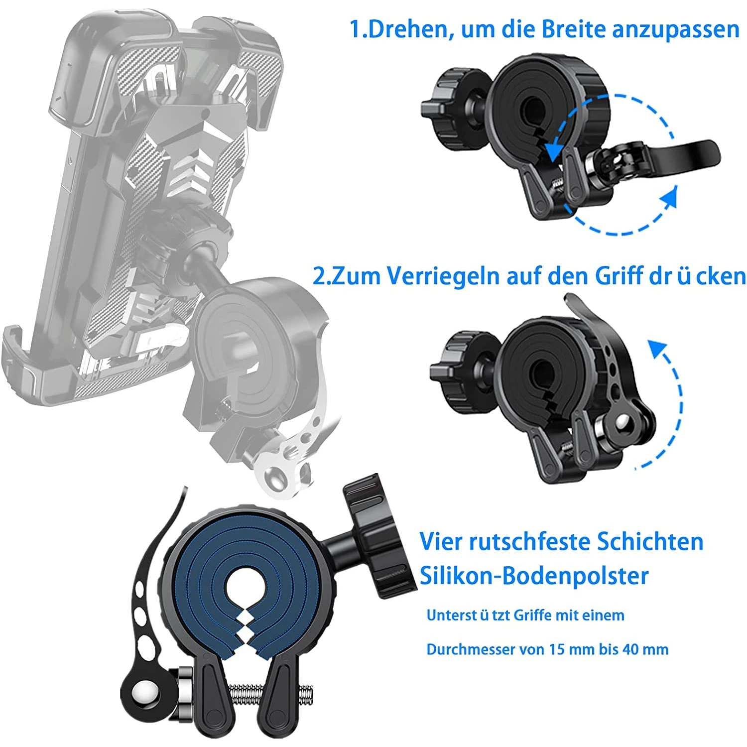 Notre Porte téléphone portable pour motos, scooters, vélos et trottinettes dispose d’un interrupteur à l’arrière afin de verrouiller facilement et rapidement votre smartphone.