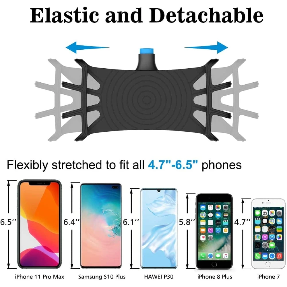 Notre attache convient à 99 % des téléphones entre 4,5 et 6,5 pouces, tels que les iPhone et Samsung Galaxy les plus populaires. Son design en silicone haut de gamme assure une fixation souple, évitant les rayures tout en garantissant un maintien solide. Un accessoire polyvalent pour la majorité des smartphones !