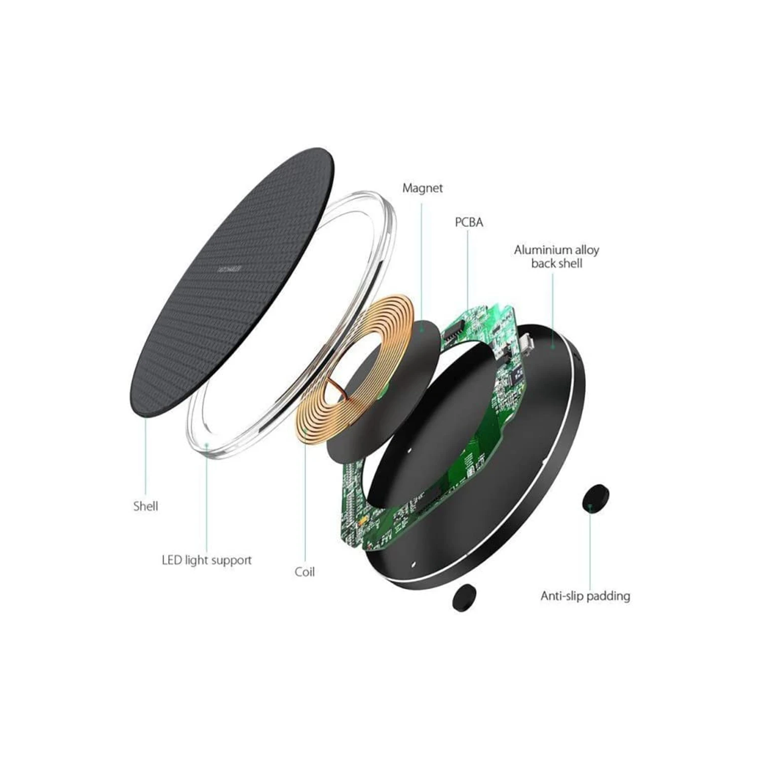 La station de charge sans fil est conçue pour être légère et compacte, avec un design épuré et une coque en alliage d’aluminium qui allie robustesse et esthétisme. Son caoutchouc antidérapant garantit une stabilité parfaite et empêche le glissement de votre appareil pendant la recharge.