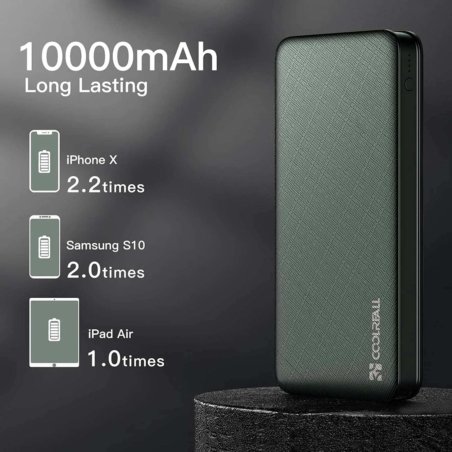 Coolreall, marque de repère dans le domaine de la Batterie Externe, nous propose son modèle de 10000mAh ayant une charge super rapide. Elle a deux ports de sorties (2.0A +2.0A) rechargeant ainsi vos deux appareils favoris en même temps deux fois rapidement qu’avec une vitesse de sortie standard ⚡.