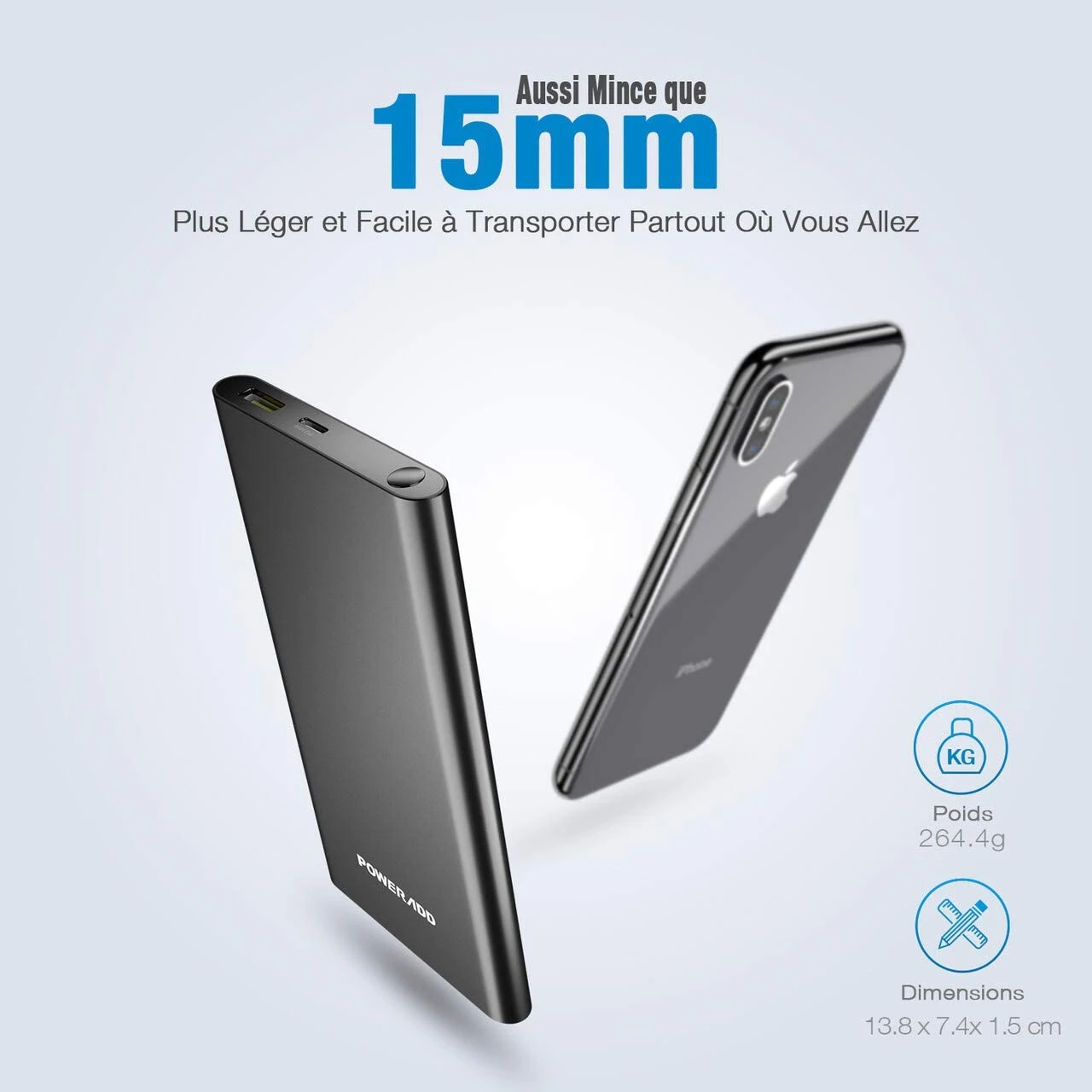 Besoin d’une batterie externe (autrement appelé “Power Bank“) d’une capacité de 10000mAh ? Découvrez dès maintenant notre modèle intégrant la charge rapide (recharger par exemple un iPhone XS de 0% à 50% en seulement 30 minutes ) ou encore un système de multi-protection vous protégeant des surcharges, des surtensions ou encore des courts circuits. Confiant de la qualité de nos produit, une garantie de 2 ans est offerte à l’achat de ce produit et un service client reste à votre disposition en cas de quelconque problème .