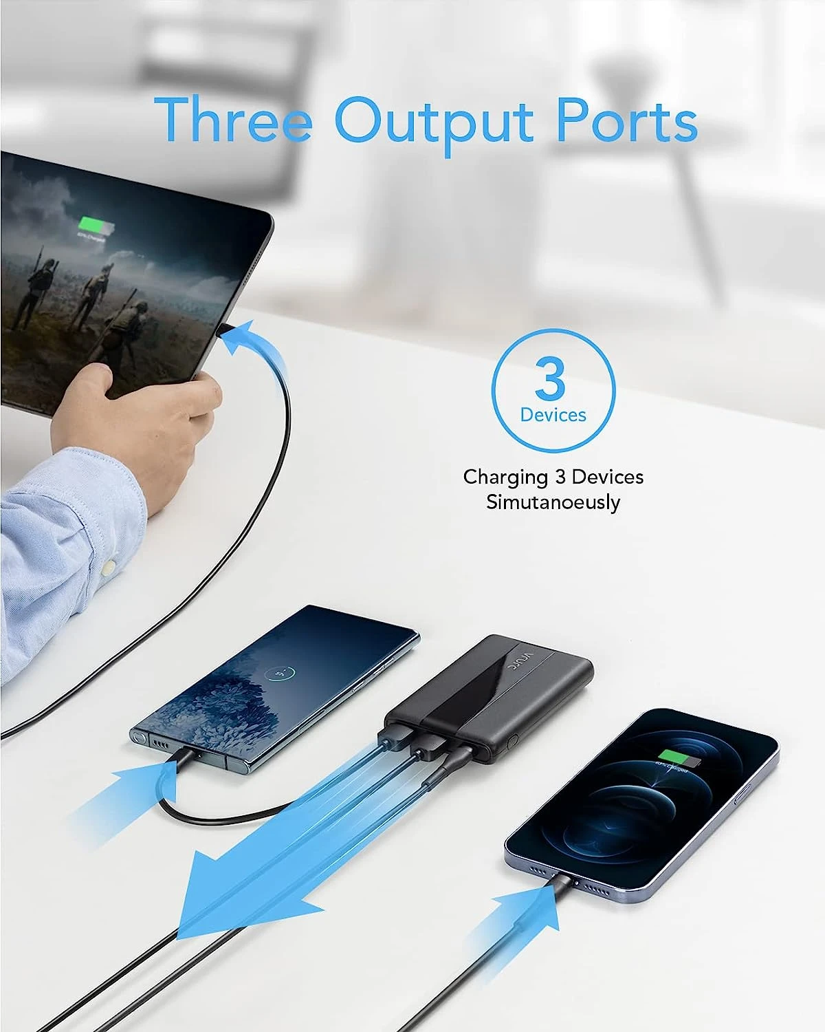 - Recharge 2-3 fois le téléphone – 10000 mAh