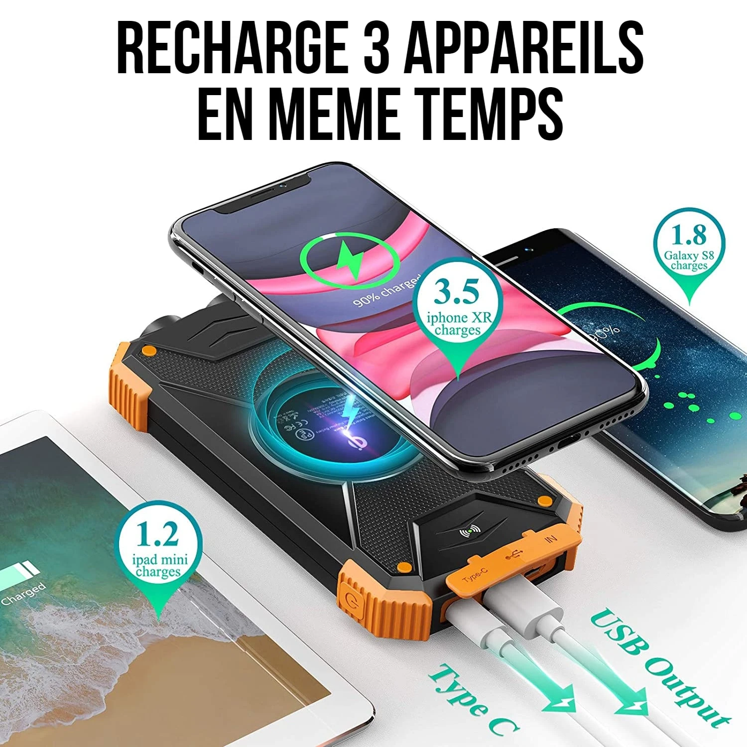 - Recharge 2-3 fois le téléphone – 10000 mAh