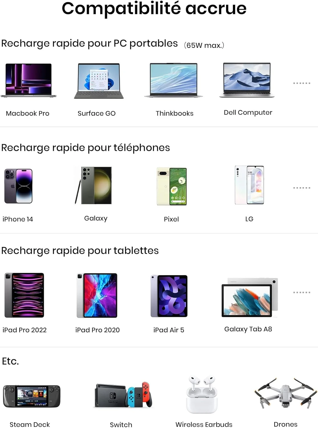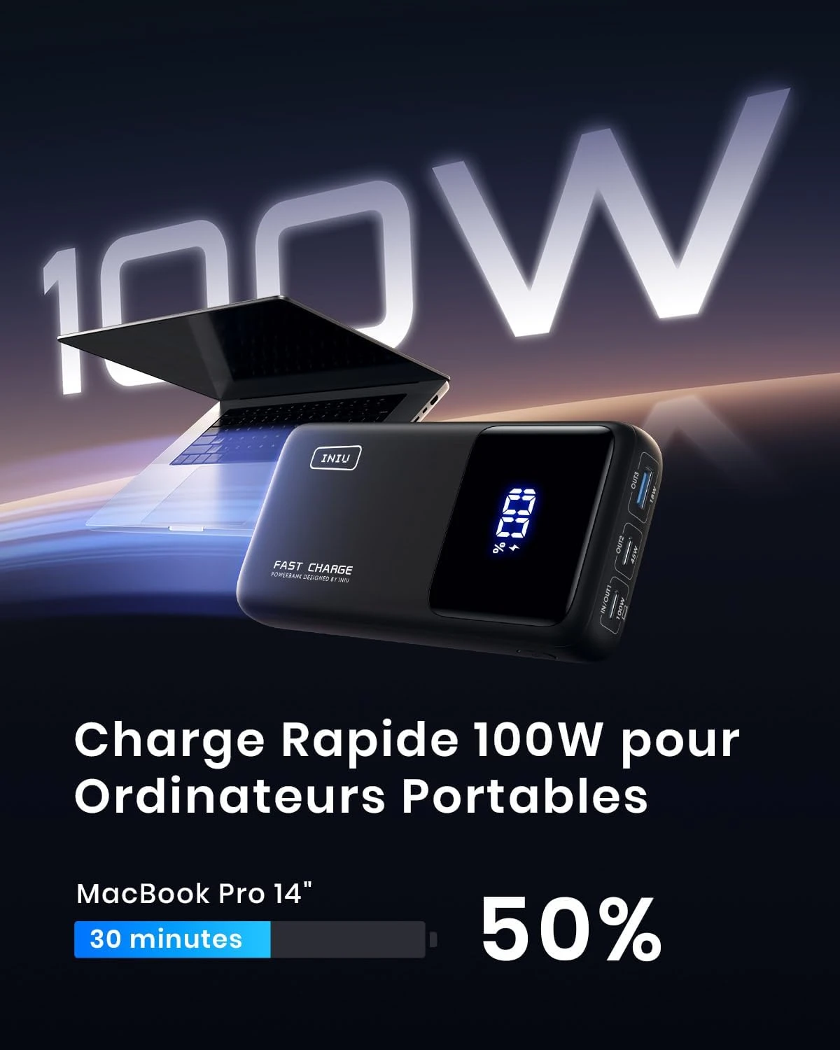 💻 Charge rapide de vos ordinateurs portables à 100W