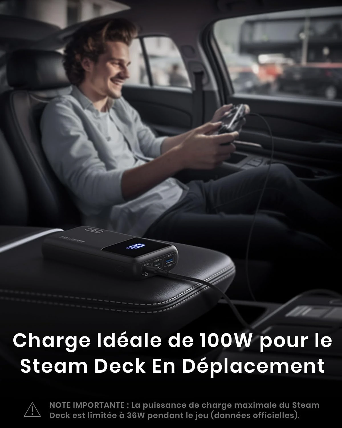 Emportez vos sessions de jeu partout avec vous ! Avec cette batterie, vous pouvez recharger votre console Steam Deck à pleine vitesse, garantissant que vos aventures de jeu continuent sans interruption, que vous soyez en voyage ou chez des amis.
