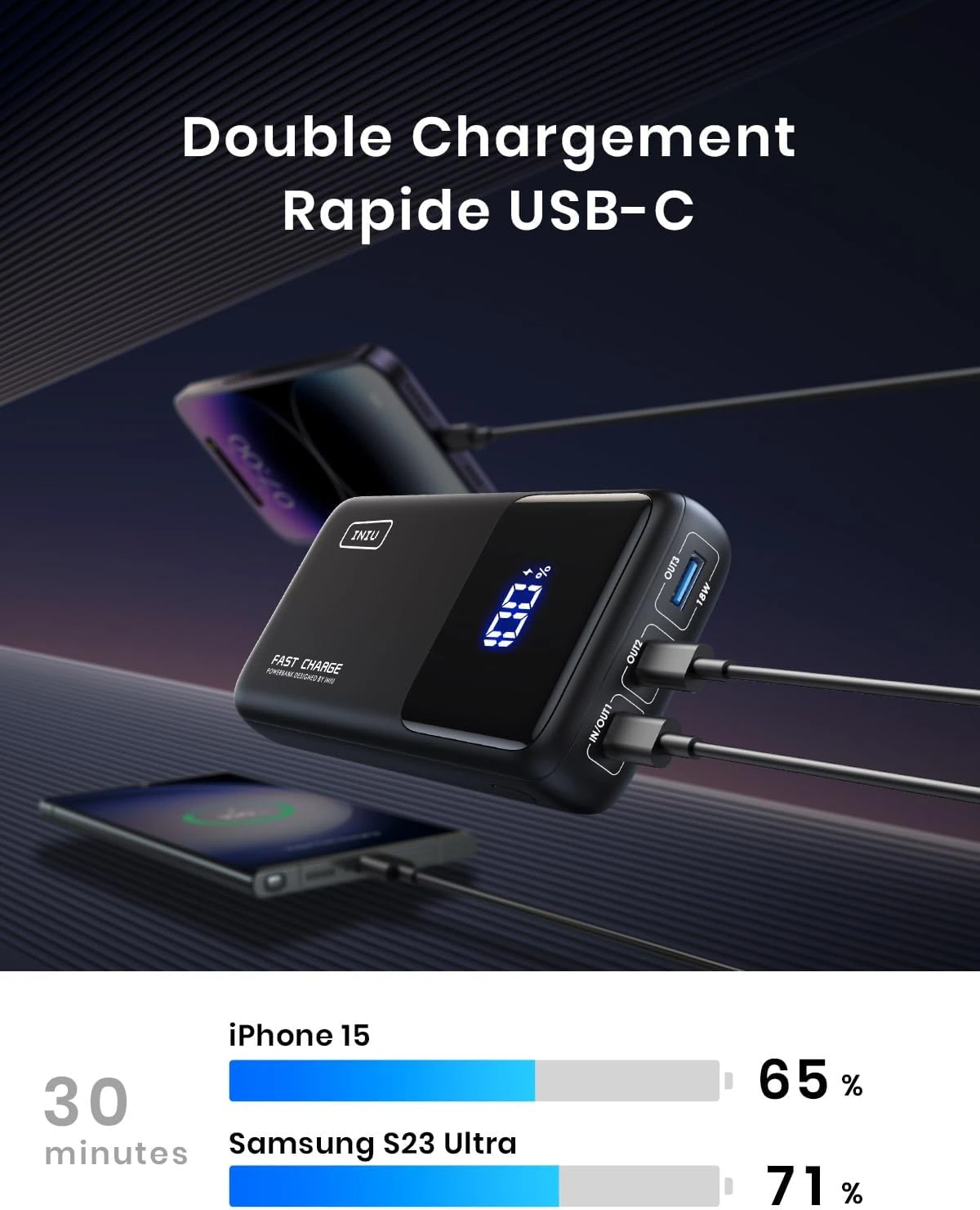 Équipez-vous pour tous les scénarios de charge grâce aux deux ports USB-C. Que vous ayez besoin de recharger un smartphone, une tablette, un ordinateur portable, ou tout autre appareil USB-C, cette batterie externe saura répondre à vos besoins, à la fois au travail et pendant vos moments de loisirs.
