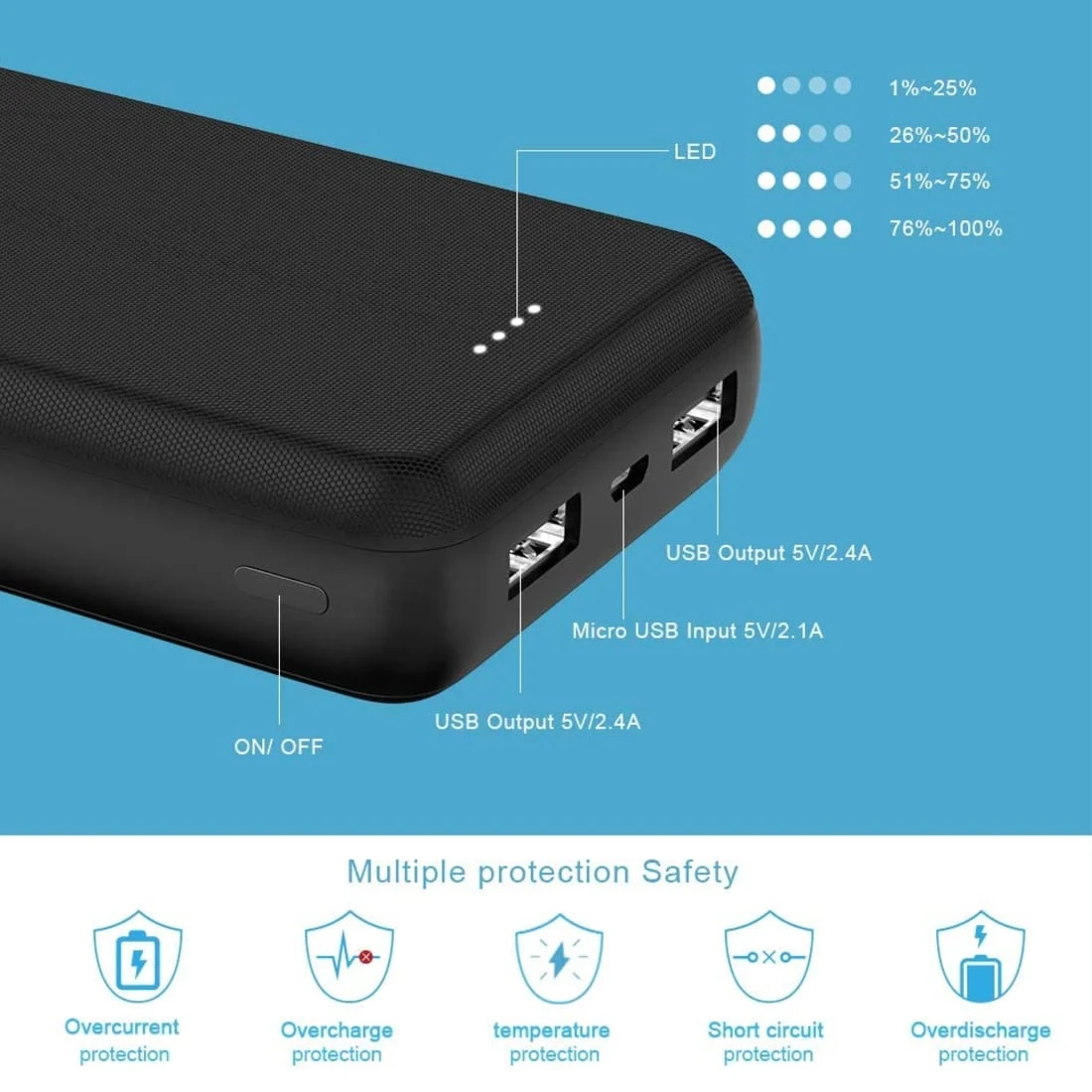 Batterie externe 20000mAh avec Lumière LED et 3 ports USB