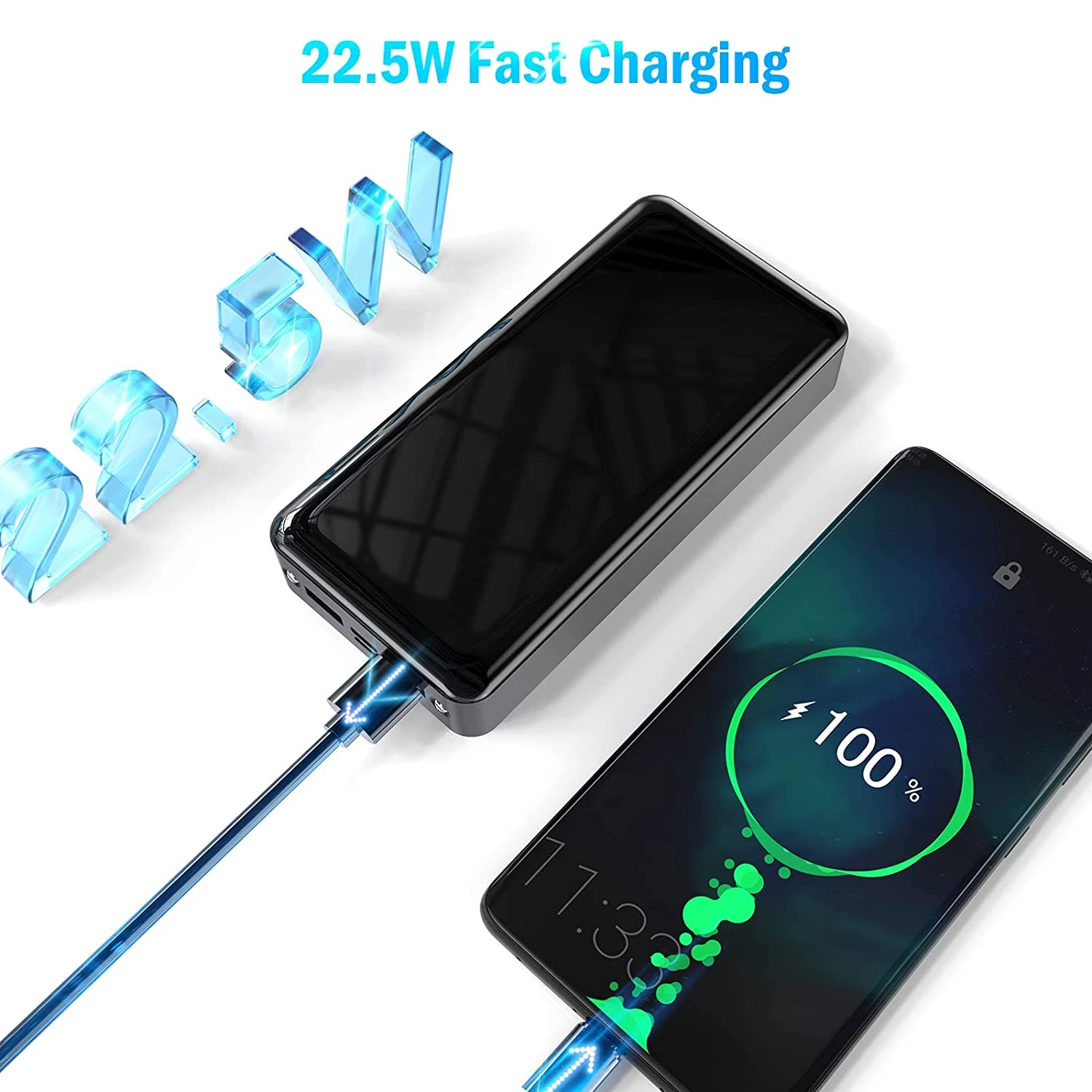 Notre Powerbank a une grosse capacité de 24000mAh permettant de recharger ~ 6 fois un iPhone 13, ~6,5 un iPhone, environ 20 fois des AirPods Pro ou encore 3 fois un iPad ❤️.