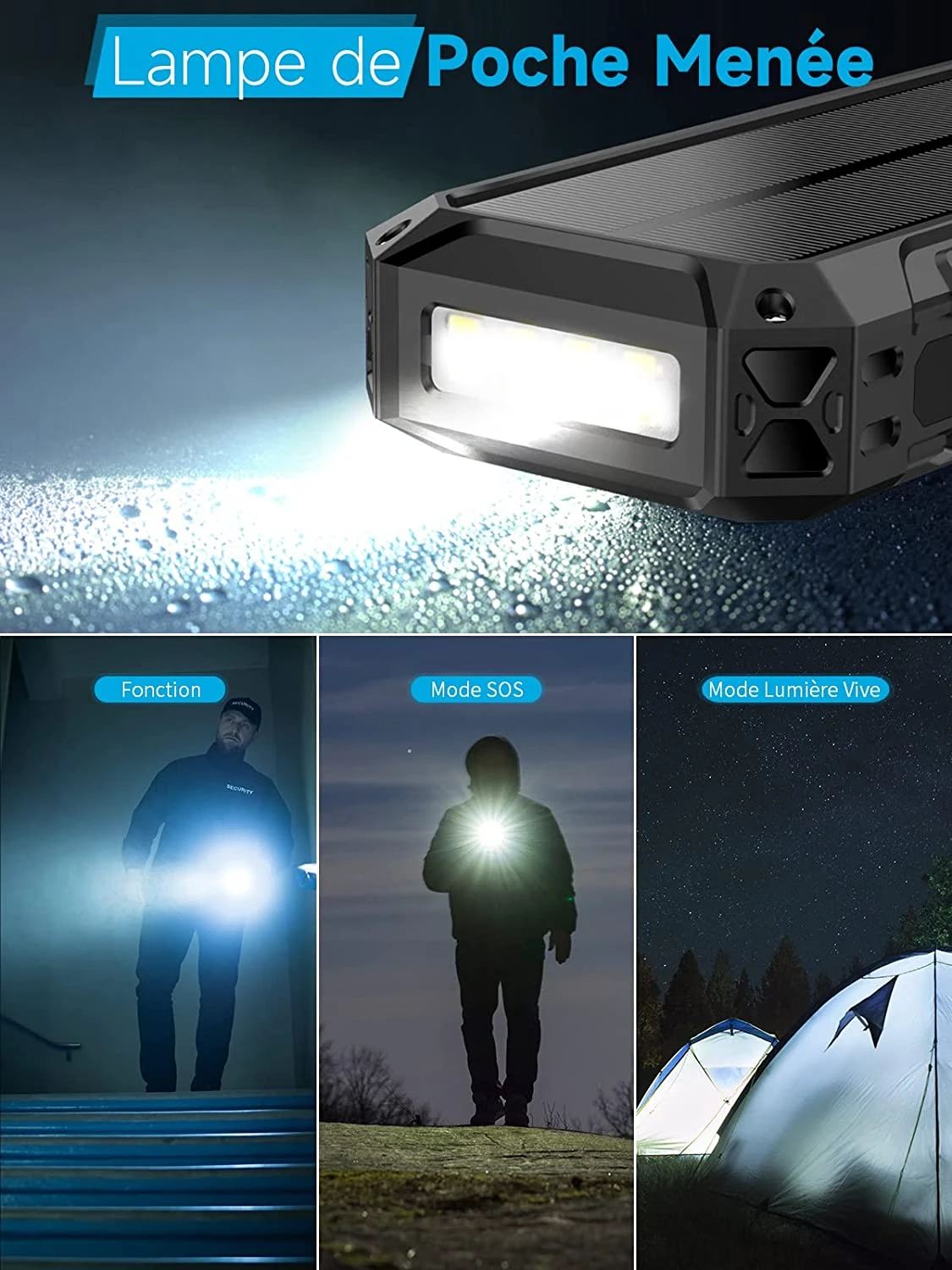 Notre Batterie de 36 000 mAh recharge par exemple ~ 9 fois un iPhone 11 ou 8 fois un Galaxy S8 ! Son panneau solaire lui permet de se recharger automatiquement sans que vous ayez à faire quoi que soit, il lui suffit de quelques rayons de soleils ☀️. Conçu avec des matériaux de qualité et confiant de la durabilité de notre batterie de secours, une garantie de 36 mois est offerte à l’achat de cette dernière et un service client reste disponible afin de répondre à toutes vos questions ✅.