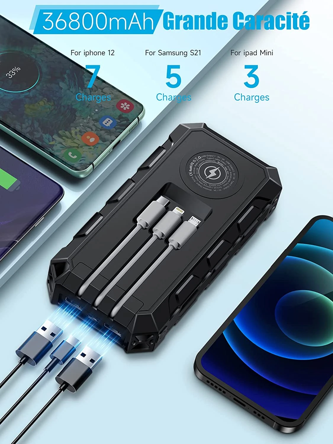 - Recharge 7 à 9 fois un smartphone en moyenne – 36000mAh