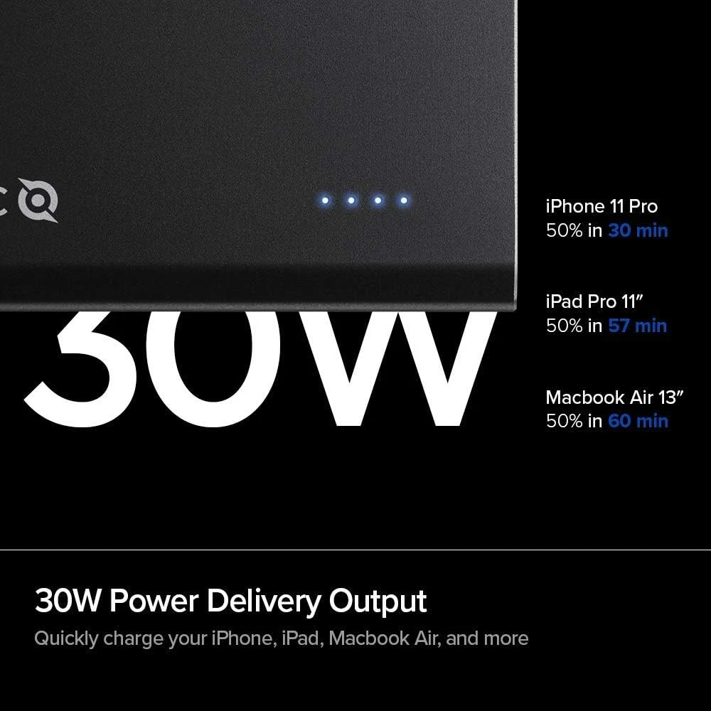 Que ce soit pour votre iPhone 11 Pro, qui peut atteindre une recharge de 50% en seulement 30 minutes, ou pour votre MacBook Air, qui récupère 50% de sa batterie en seulement 60 minutes, notre Batterie de secours 60W est la solution idéale pour rester connecté en déplacement.