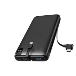 La principale caractéristique de cette batterie externe est la présence de câbles de charge intégrés, éliminant ainsi le besoin de transporter des câbles supplémentaires. Fini les tracas liés à la recherche de câbles adaptés à chaque appareil, notre batterie externe vous offre la commodité d’avoir toujours la solution de charge adaptée à portée de main.