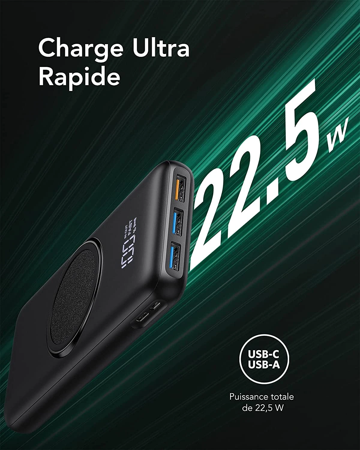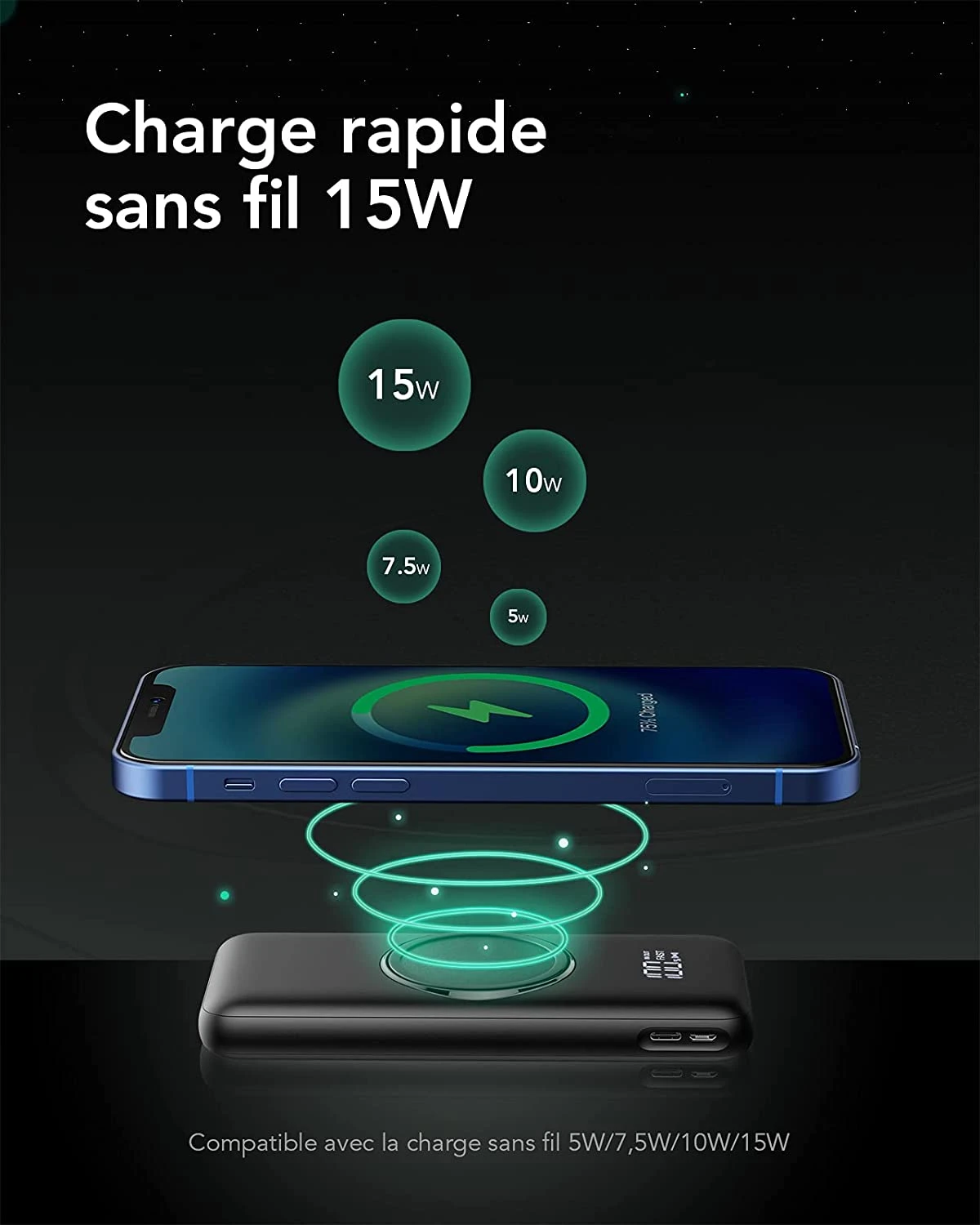 Cette Batterie externe de la marque Charmast a une capacité de 20000 mAh et possède d’un support QI de recharge sans fil afin de pouvoir charger son smartphone en le posant simplement dessus ❤️. Confiant de la qualité de nos produits, une garantie de 2 ans est offerte à l’achat de ce produit et un service client reste à  votre disposition en cas de quelconque problème .