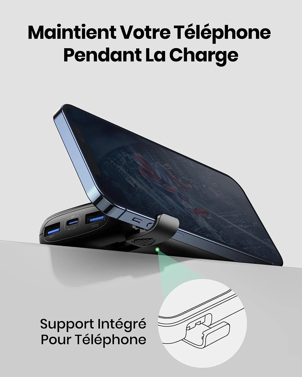 Malgré sa capacité impressionnante de 10 000 mAh, notre Batterie Externe est incroyablement petite et légère, ne faisant que la moitié de la taille de votre iPhone. Glissez-la facilement dans n’importe quelle poche ou sac pour rester alimenté partout où vous allez. Avec la possibilité de recharger simultanément 3 appareils grâce au port PD USB-C et aux sorties USB, vous n’aurez plus à attendre en file d’attente pour charger vos appareils.