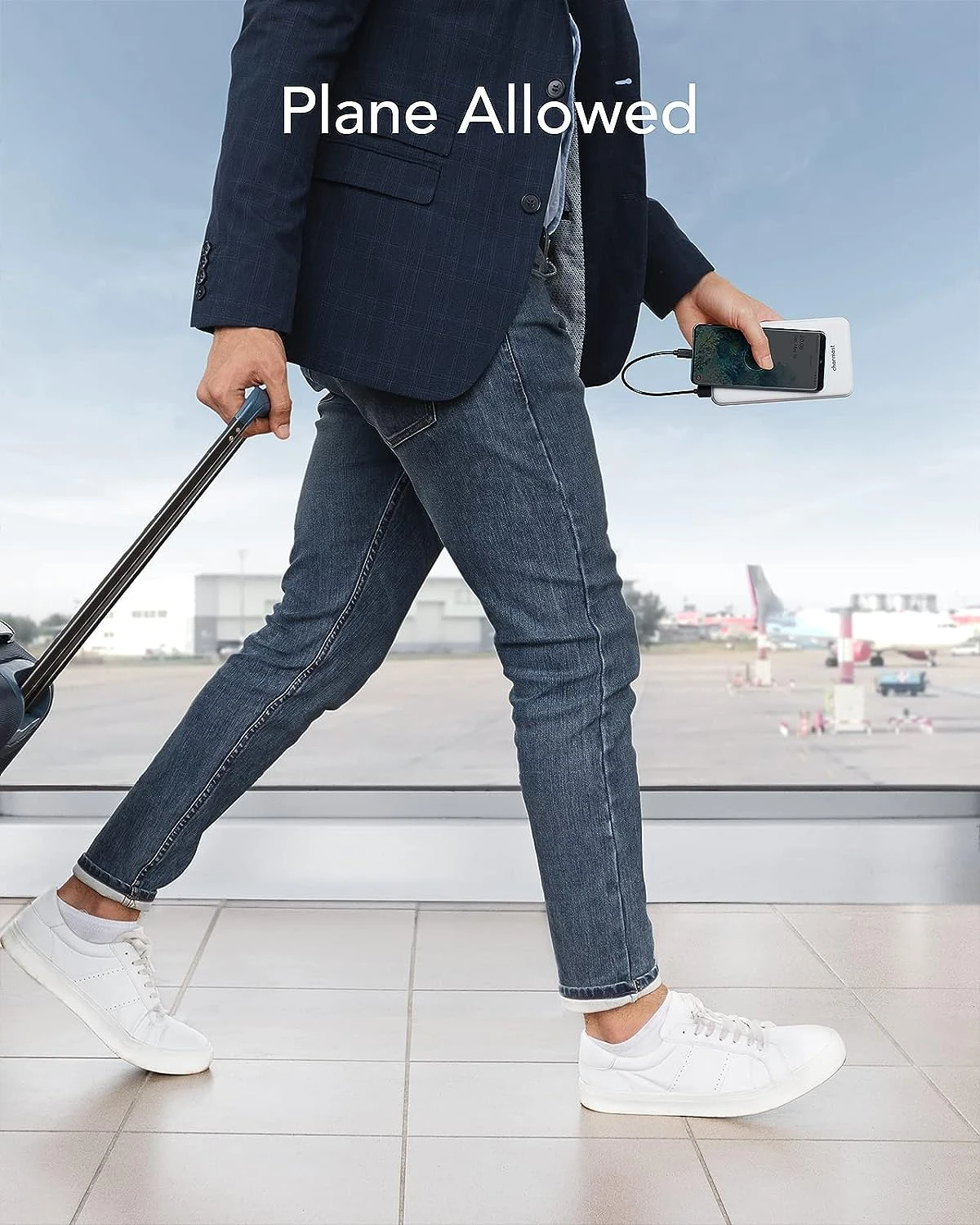 Son design compact et mince en fait un compagnon de voyage idéal. Conforme aux normes de transport aérien, cette batterie portable peut être emportée en avion sans souci. Ses dimensions de 162 x 91,8 x 15,5 millimètres et son poids de 338 grammes en font un accessoire pratique à glisser dans votre sac ou votre poche.
