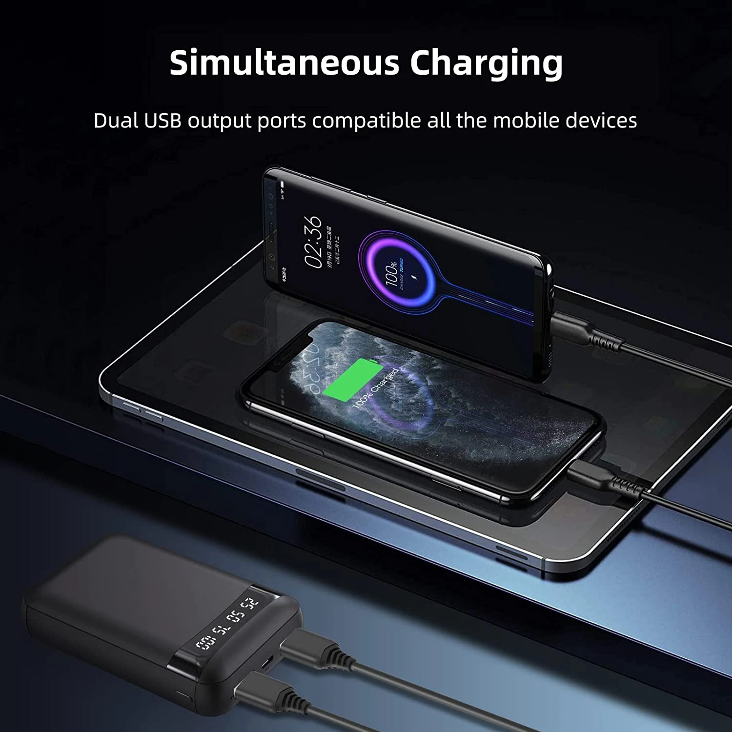 La petite et légère batterie portable JVGoal de 10000mAh peut recharger où que vous alliez votre smartphone et un autre appareil simultanément et rapidement. Sa capacité lui permet quant à elle de recharger ces derniers plusieurs fois (2-3 fois par appareil) ❤️.