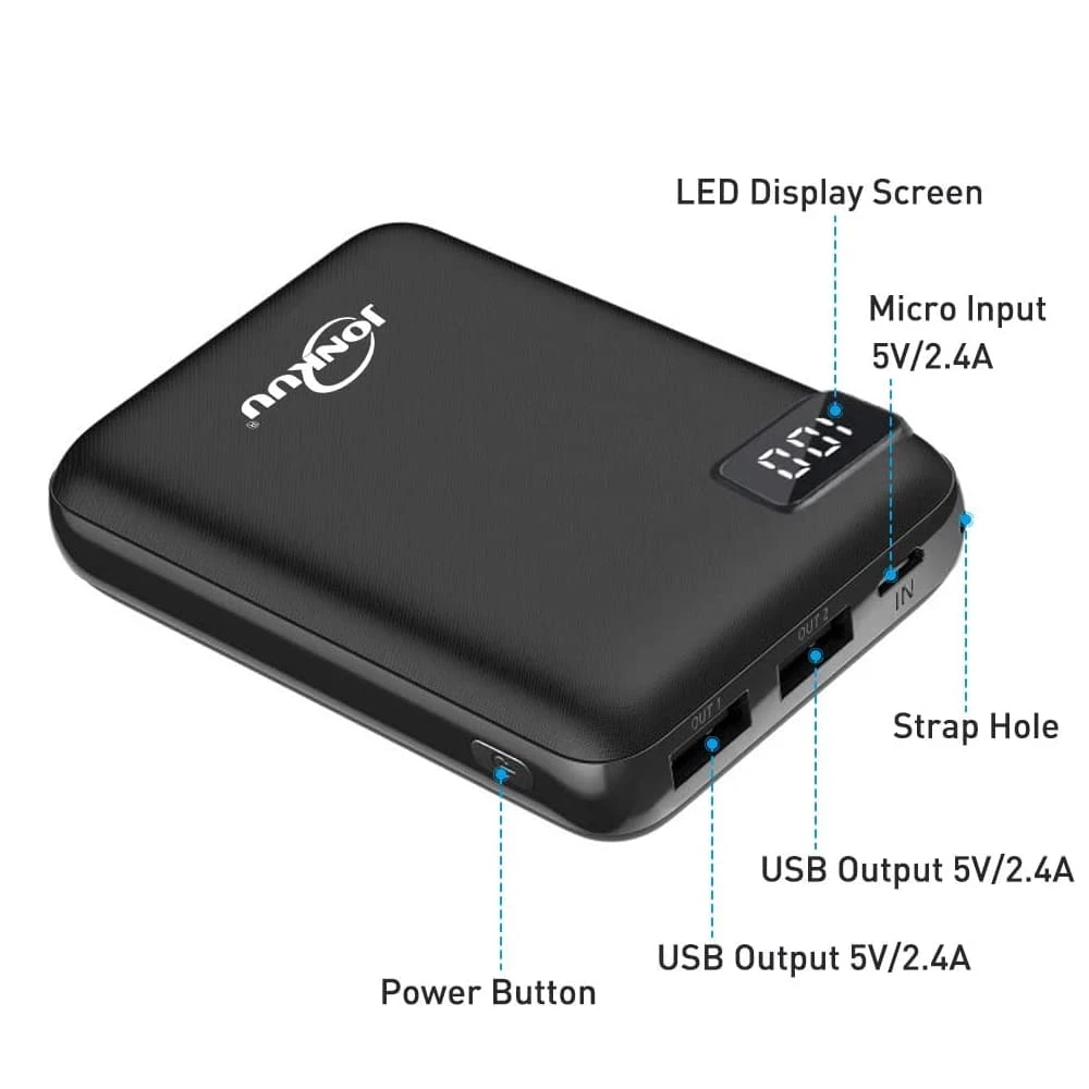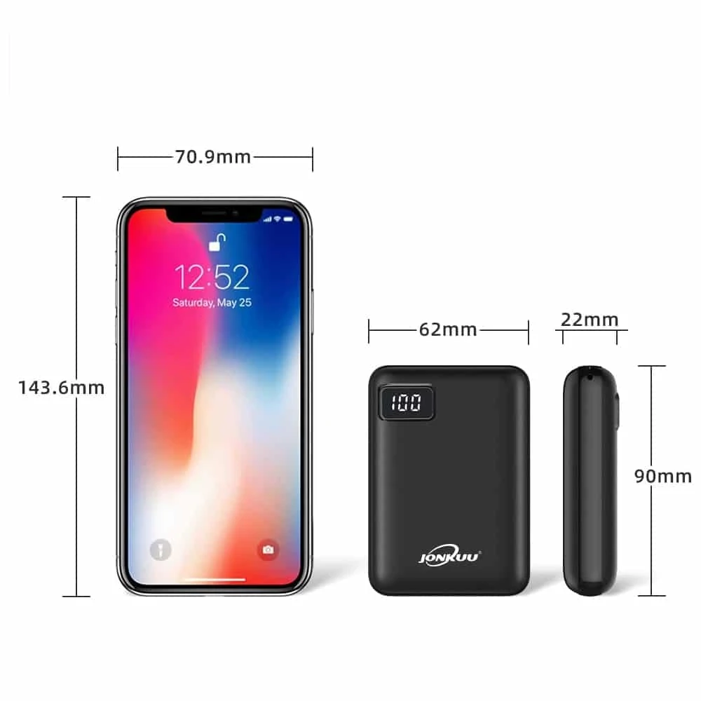 Notre Batterie Externe mini ne mesure que 9 x 6.2 x 2.2 centimètres pour une masse légère de 182 grammes. Elle est très compacte pour sa capacité. Elle est très facilement transportable partout et rentre par exemple dans n’importe quelle poche . Deux ports de sorties USB-A sont intégrés afin de recharger jusqu’à 2 appareils en même temps . Confiant de la qualité de nos produits, une garantie de 2 ans est offerte à l’achat de ce produit et un service client reste à votre disposition en cas de quelconque problème ✅.