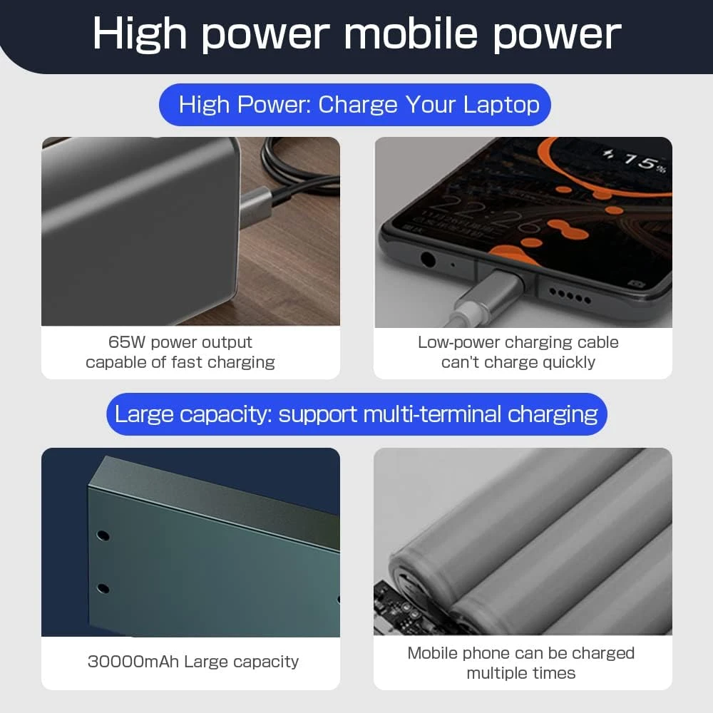 Découvrez notre Batterie Externe pour Ordinateur Portable 65W, conçue pour vous offrir une solution de charge fiable et puissante où que vous soyez. Dotée d’une grande capacité de 30 000 mAh, cette batterie externe légère est votre meilleur compagnon pour les voyages, les voyages d’affaires et les aventures en plein air 💕.