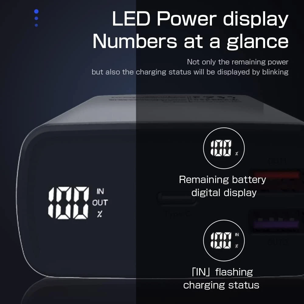 La capacité généreuse de 30 000 mAh vous permet de recharger votre smartphone jusqu’à 6 à 8 fois en cas d’urgence, vous assurant une source d’alimentation constante. Son design compact et facile à transporter en fait un accessoire essentiel pour rester connecté en toutes circonstances. L’écran LED de l’alimentation affiche clairement la capacité restante de la batterie, offrant une compréhension en temps réel de l’état de la batterie. Vous saurez toujours combien d’énergie il vous reste pour rester opérationnel.