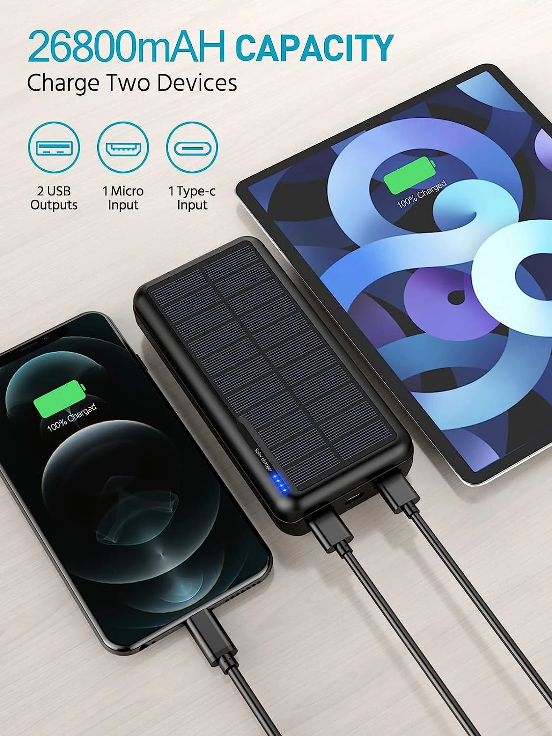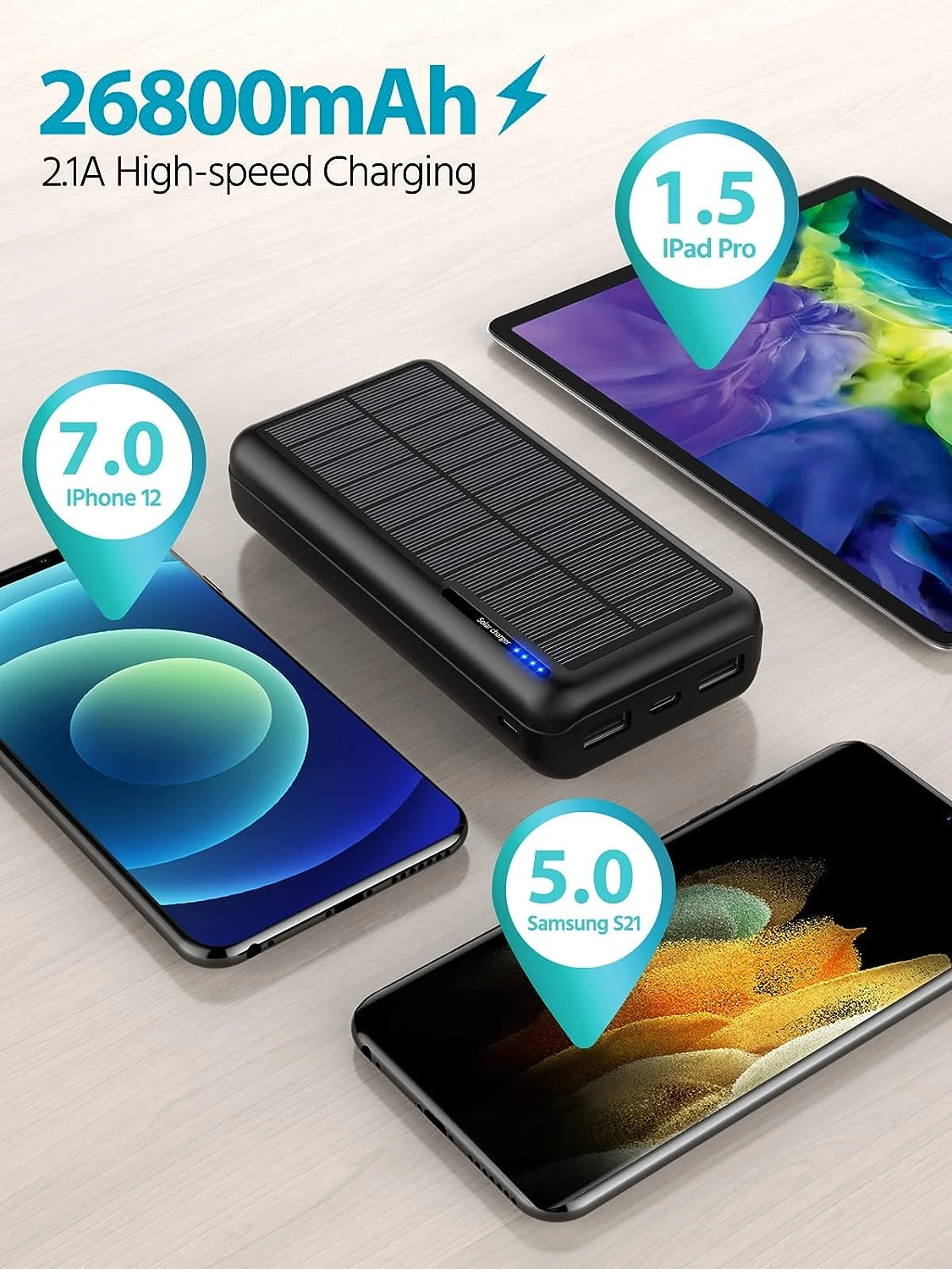 Batterie portable 26800mAh Solaire