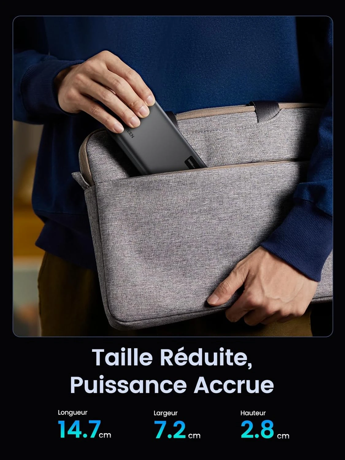 💯 Design Compact et Ultra-Léger Avec une épaisseur de seulement 1,8 cm et un poids plume de 224g, cette batterie est l’une des plus minces du marché. Elle se glisse facilement dans votre poche ou votre sac, idéale pour les journées bien remplies, les voyages ou le camping.