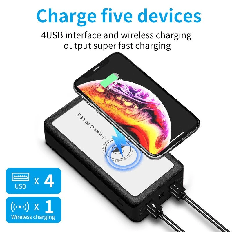Éclairez les endroits les plus sombres avec notre Batterie Externe Solaire munie d’une Lampe de poche puissante et efficace de 28 LED. Elle dispose également d’une immense capacité de 30 000 mAh et peux recharger un smartphone sans fil 👌 ! Confiant de la qualité de nos produits, une garantie de 2 ans est fournie à l’achat de cette batterie de secours et un service client répond à toutes vos questions en généralement moins de 24 heures .