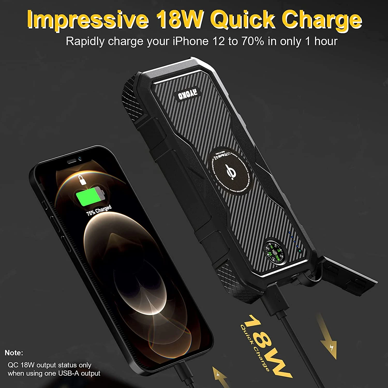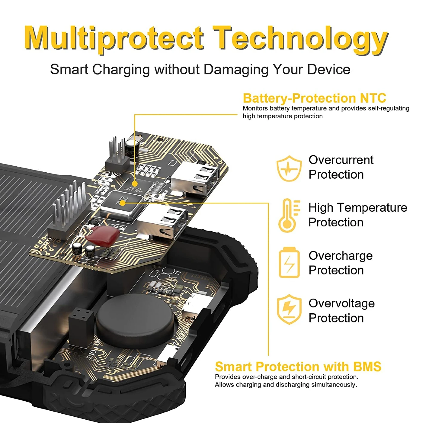 Son énorme capacité de 25 000 mAh vous permet de recharger votre smartphone 5 à 6 fois en moyenne avant de s’épuiser, soit la possibilité d’utiliser votre smartphone plusieurs jours sans avoir à trouver une prise . Confiant de la qualité de nos produits, une garantie de 12 mois est offerte à l’achat de cette batterie externe étanche, et un service client est à votre disposition au cas où vous auriez une quelconque question .