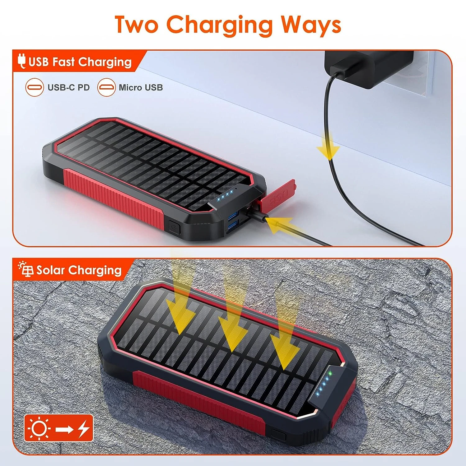 Découvrez notre Batterie externe munie d’un panneau solaire capable de recharger votre smartphone là ou il y a du soleil . Réfléchie pour être transportée partout, elle est imperméable, anti choc et résistante au sable. Ses deux entrées (Micro et USB-C) et ses trois sorties ont une vitesse de charge rapide . Confiant de la qualité de nos produits, une garantie de 2 ans est fourni à l’achat de cette batterie de secours et un service client reste à votre écoute afin de répondre à toutes vos questions .