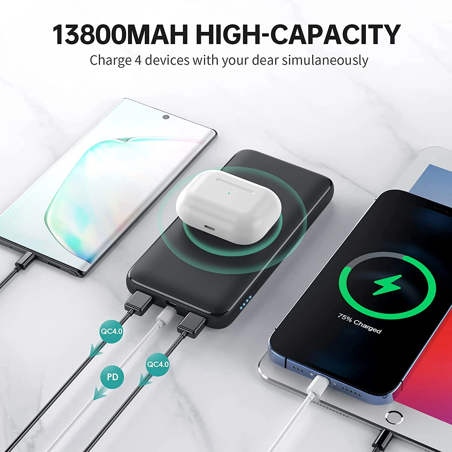 La Batterie externe Trswyop de 13800mAh est l’une des plus puissantes et performantes dans le marché pour sa capacité. En effet, elle dispose de plusieurs fonctionnalités très utiles comme la charge sans fil, la charge ultra rapide et la possibilité de recharger jusqu’à 4 appareils en même temps ⚡. Confiant de la qualité de nos produits, une garantie de 3 ans est offerte à l’achat de ce produit et un service client reste à votre disposition en cas de quelconque problème .