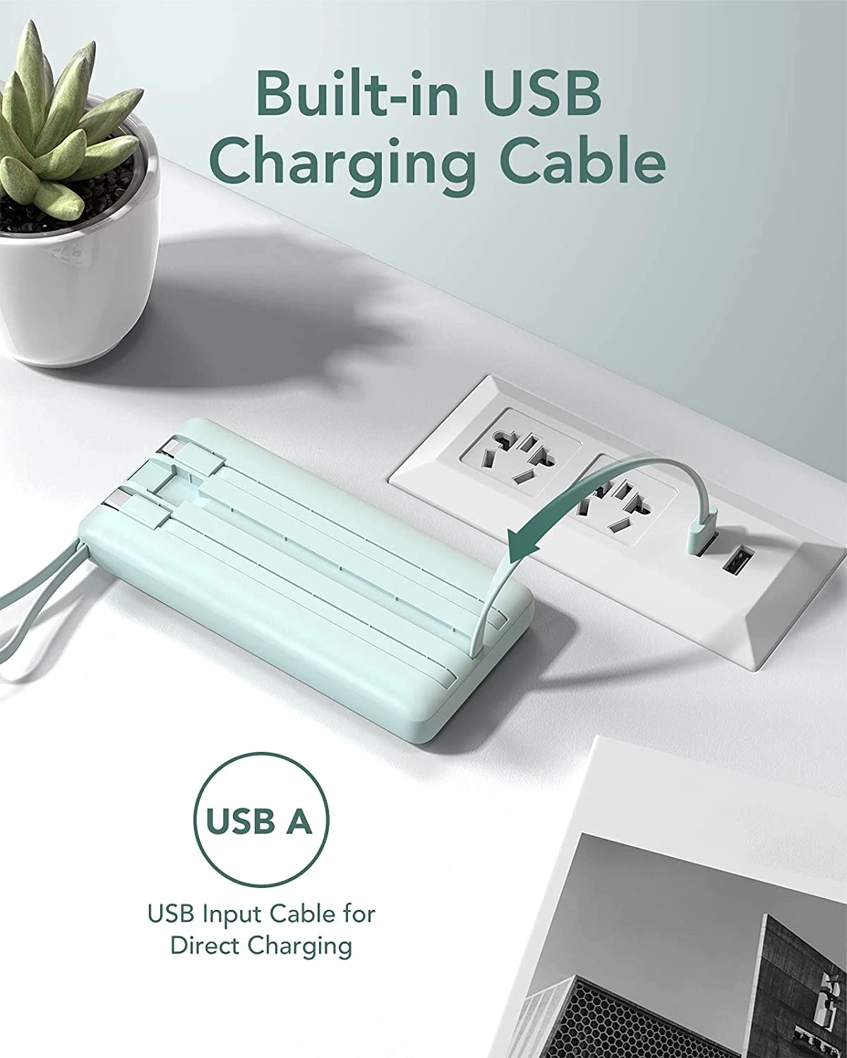 VEEKTOMX : Batterie Externe 10000mAh câble intégrés