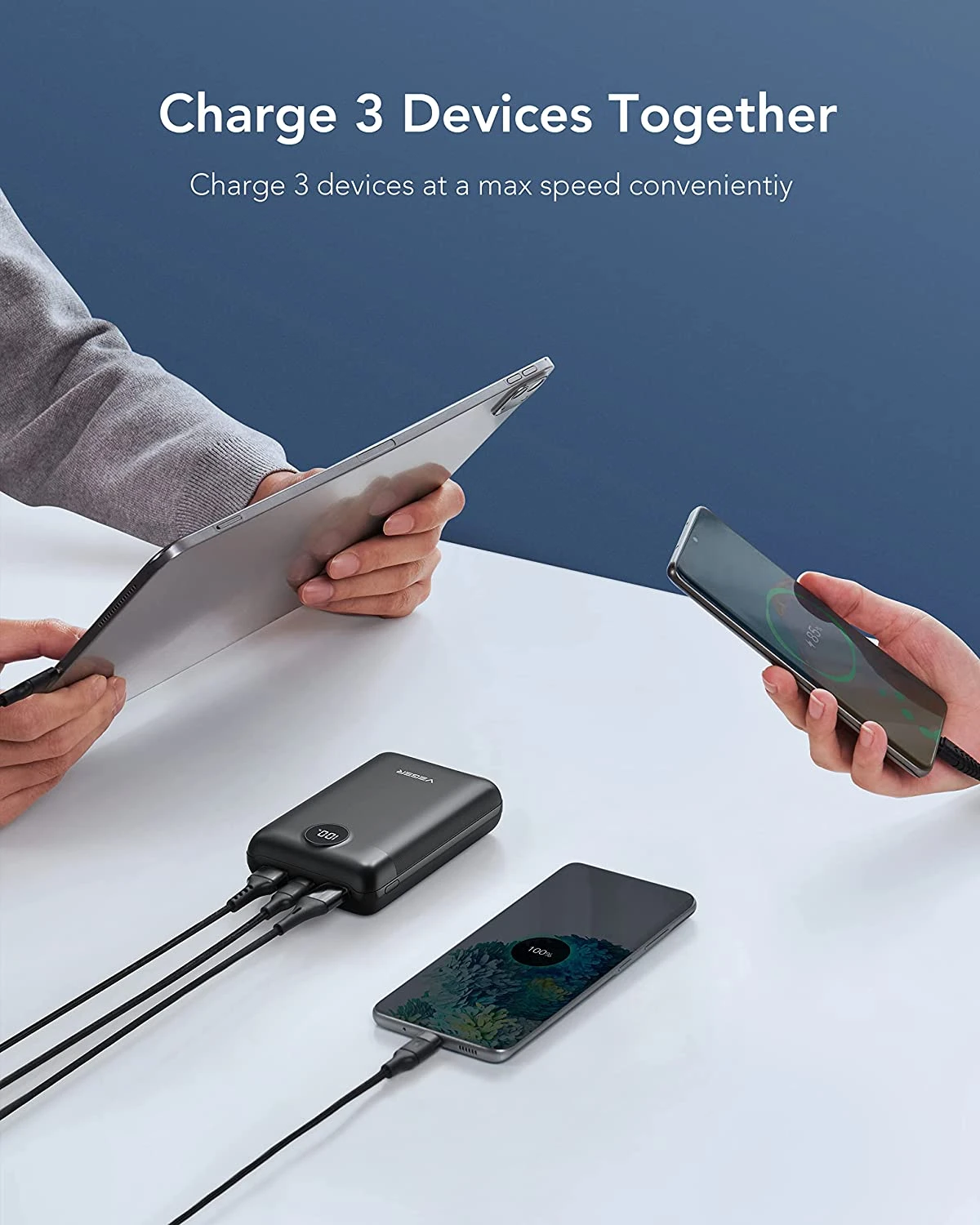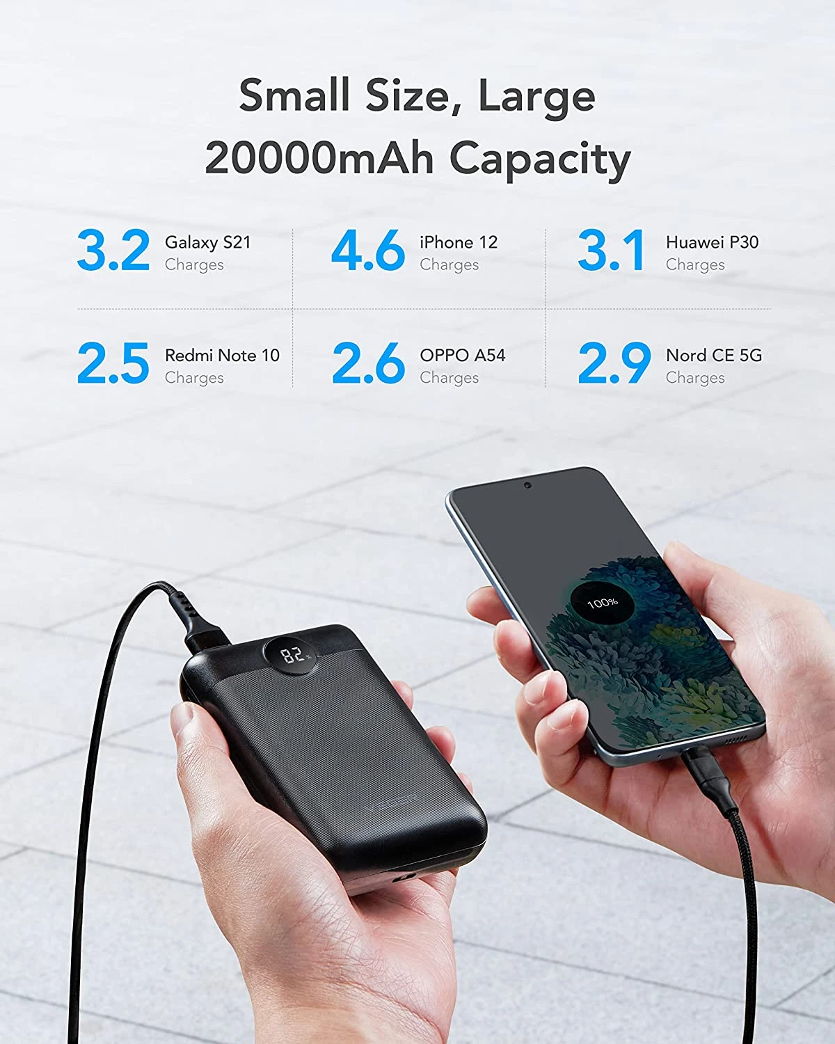 Notre Power Bank de la fameuse marque Veger a une grande capacité de 20000 mAh permettant de recharger environ 4 fois un téléphone portable. Munie de technologies avancées (PD/QC) et d’une puissance de 20W elle peut recharger 3 fois plus rapidement un smartphone qu’une charge classique ❤️.