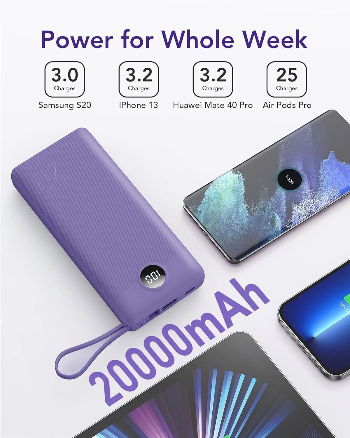 ✅ Capacité impressionnante de 20 000mAh