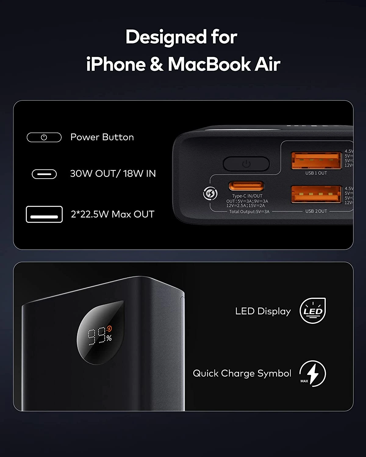 Sa grande puissance lui permet également de recharger rapidement un MacBook Air tout en restant petite et compacte ⚡. Confiant de la qualité de nos produits, une garantie de 2 ans est offerte à l’achat de ce produit et un service client reste à votre disposition en cas de quelconque problème .