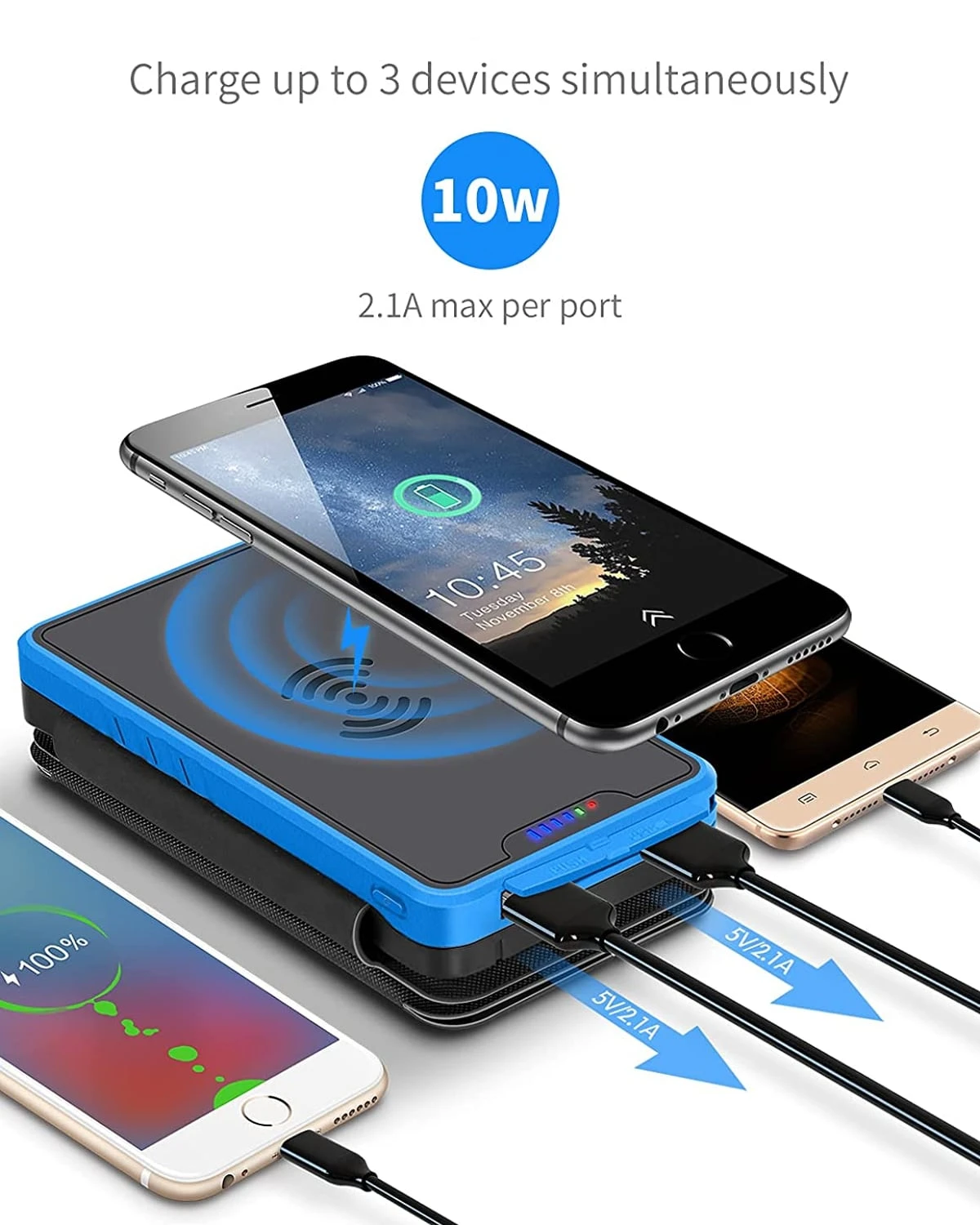 - Charge jusqu’à 3 appareils en même temps
