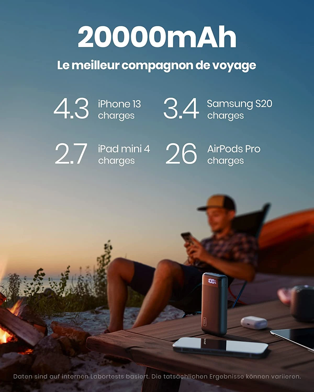 - Recharge 3-5 fois le téléphone – 20000 mAh