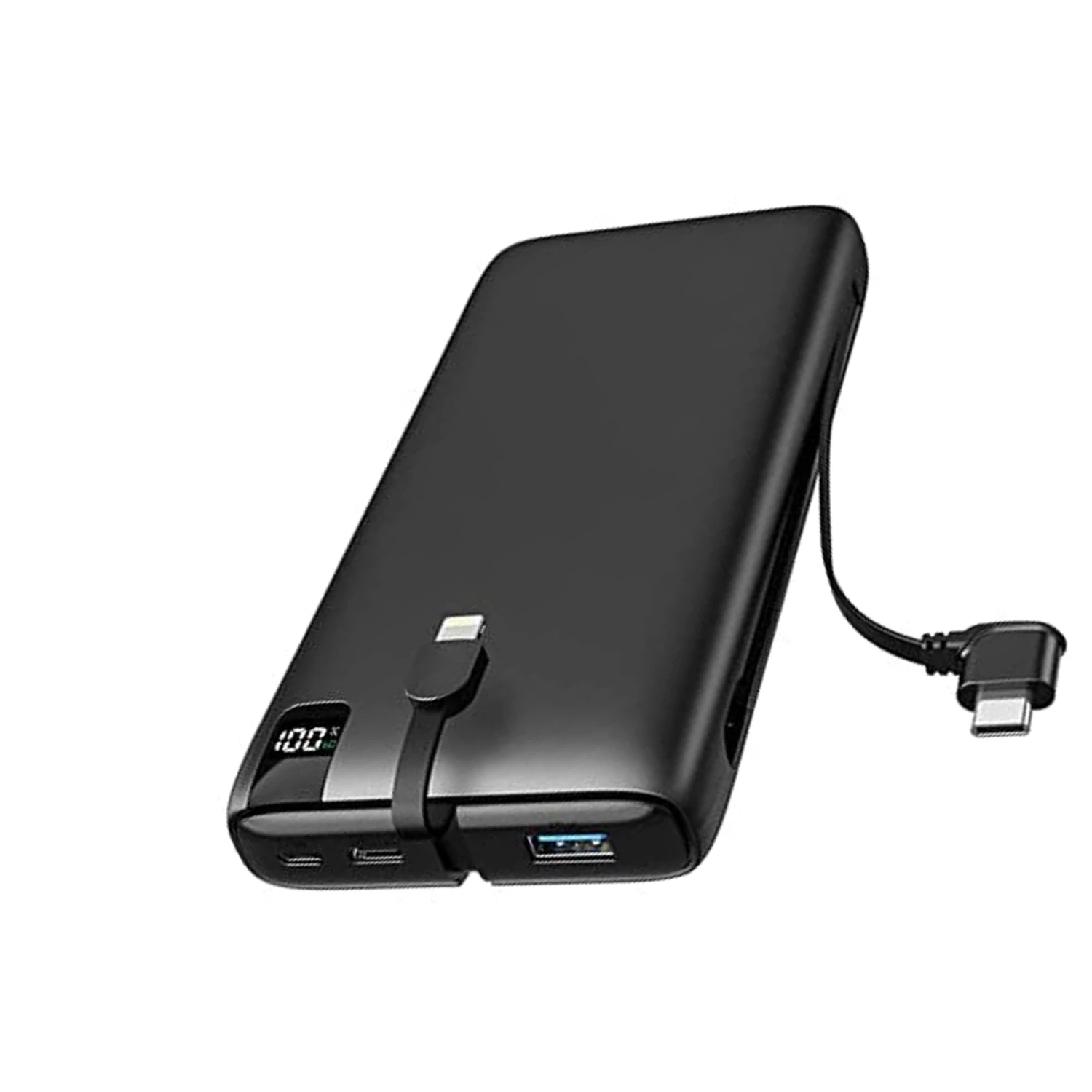 Notre Batterie Externe d’une grande capacité de 26800 mAh peut recharger environ 6,5 fois un iPhone 11 ou encore 5 fois un Samsung Galaxy S21. Équipée de 3 ports au total et de 2 câbles intégrés, elle permet de recharger jusqu’à 2 appareils en même temps ❤️.