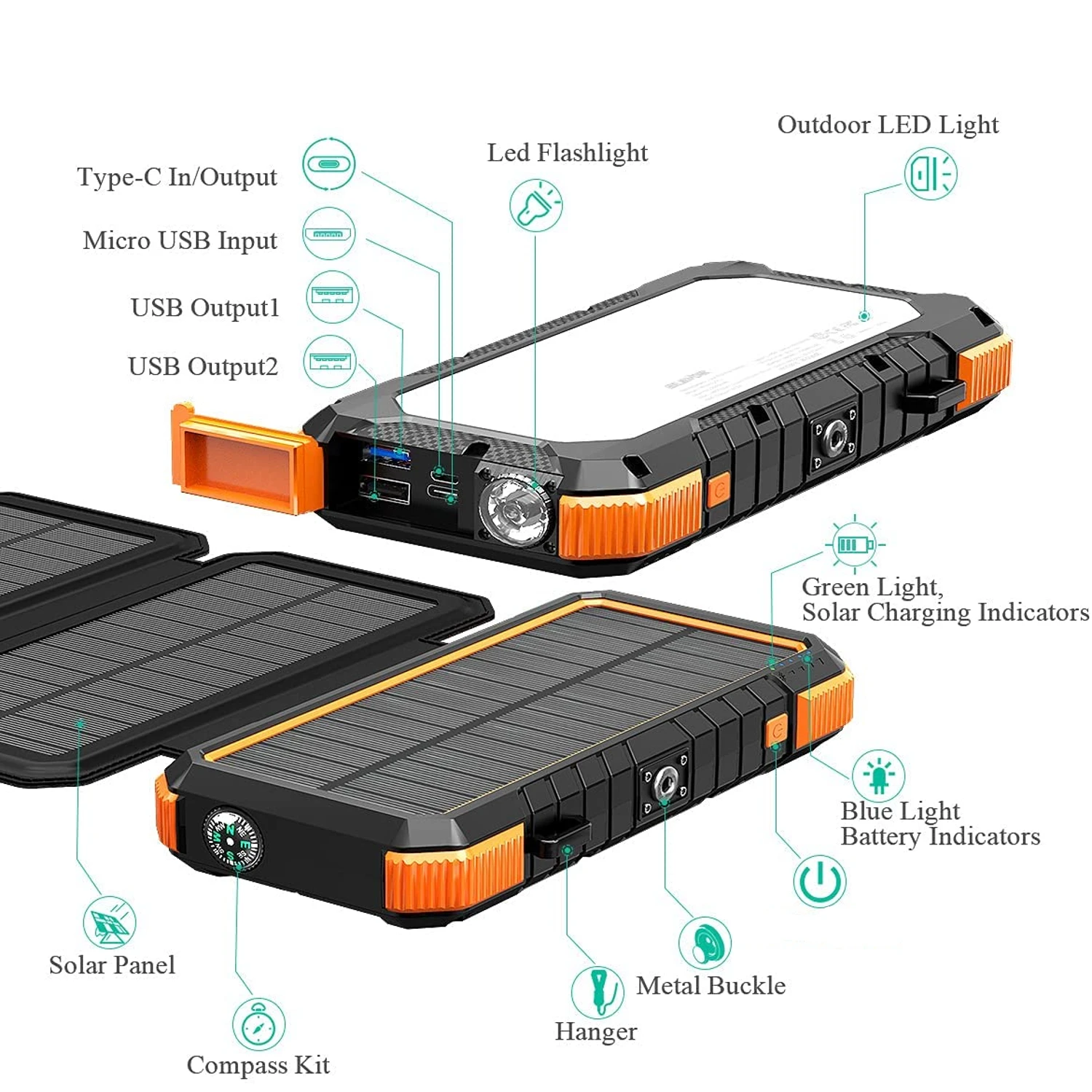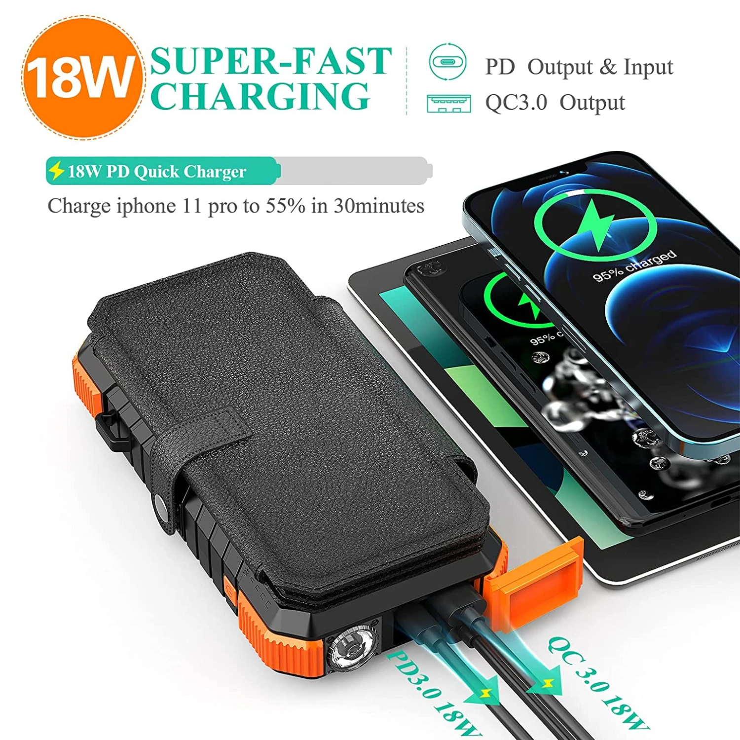 Notre Batterie Solaire de 20 000 mAh possède un port USB-C de 18 watts équipé de la technologie Power Delivery qui fait sortie ou entrée afin de se recharger ou de recharger un smartphone ultra rapidement ❤️. Confiant de la qualité de nos produits, une garantie de 2 ans est offerte à l’achat de ce produit et un service client reste à votre disposition en cas de quelconque problème .