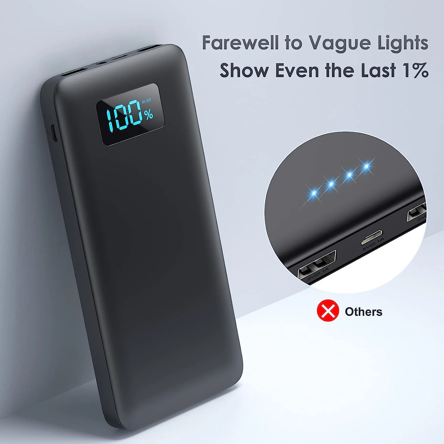 Notre Batterie Externe est équipée d’un affichage numérique LED précis de 100% à 1%, vous permettant de surveiller en temps réel le pourcentage de puissance restant. De plus, une lampe de poche LED intégrée facilite la navigation dans l’obscurité ou en cas d’urgence, idéale pour les pannes de courant, les voyages, le camping et d’autres activités de plein air.