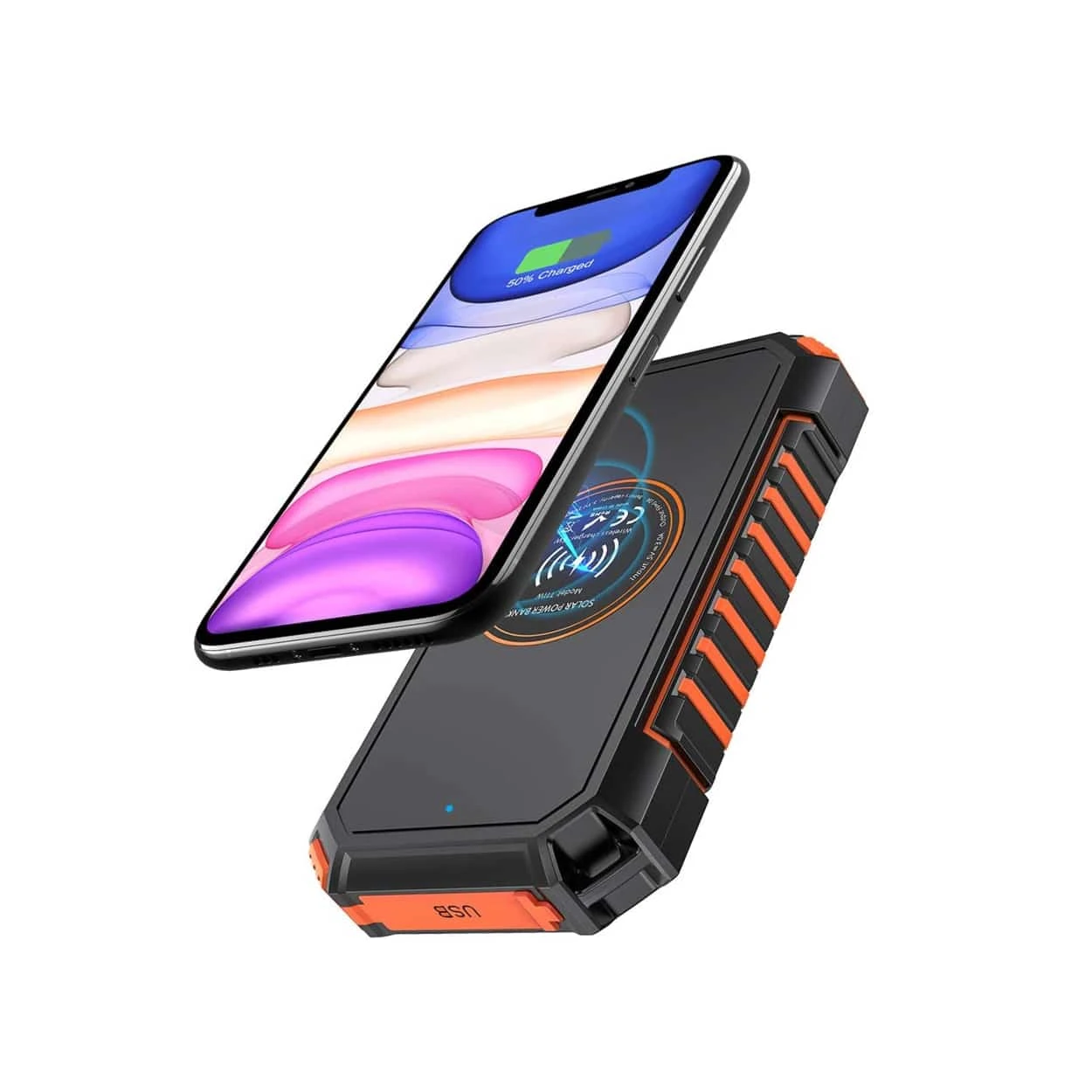 Équipée d’un panneau solaire, cette batterie peut être rechargée par la lumière du soleil. Idéale pour les randonnées ou le camping, il vous suffit de l’accrocher à votre sac à dos pour qu’elle se recharge tout en profitant du soleil. Parfaite pour les aventuriers qui veulent rester connectés, même en pleine nature.