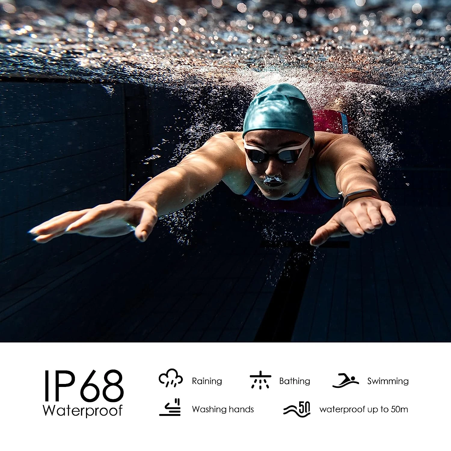 Découvrez notre bracelet connecté étanche piscine 🏊💦, votre partenaire idéal pour suivre vos activités aquatiques tout en surveillant votre santé ! Avec notre bracelet intelligent, plongez en toute tranquillité grâce à son étanchéité jusqu’à 50 mètres, que ce soit pour la natation, les lavages de mains ou même sous la pluie.