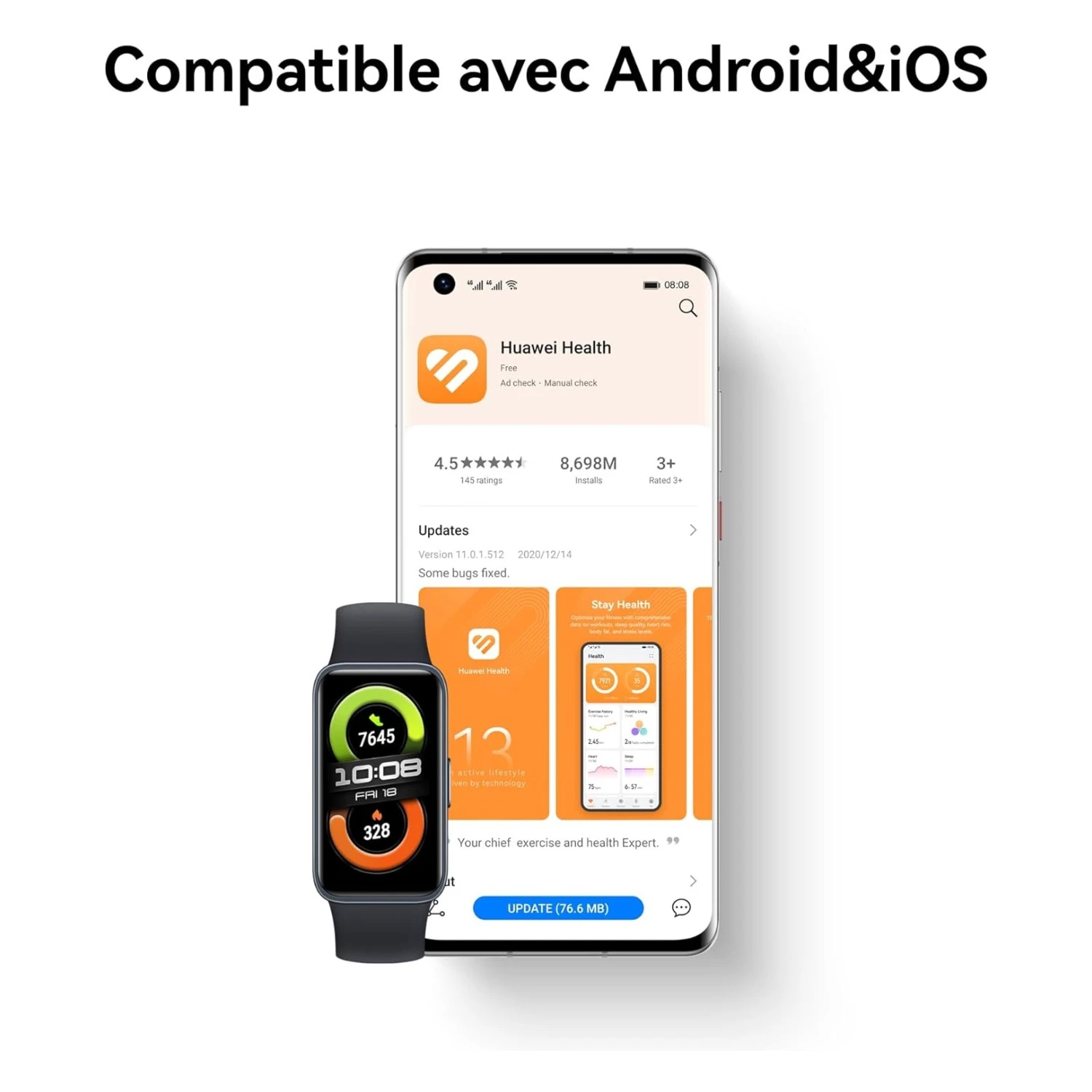 Profitez d’un écran AMOLED sans bordure pour une expérience visuelle fluide et immersive. Son design angulaire élégant et léger se porte confortablement tout au long de la journée, ajoutant une touche de modernité à votre poignet.