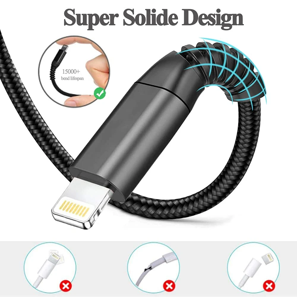 Notre Câble pour iPhone est tressé à partir de Nylon le rendant particulièrement résistant et robuste. Certifié MFi officiel, il est entièrement compatible avec tous les appareils IOS ❤️. Confiant de la qualité de notre câble lightning, une garantie de 2 ans est fournie à l’achat de ce chargeur rapide et un service client répond à toutes vos questions en généralement moins de 24 heures .