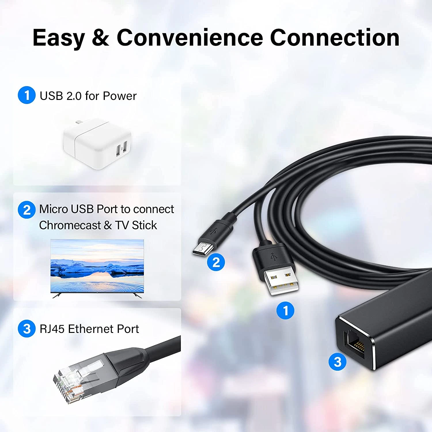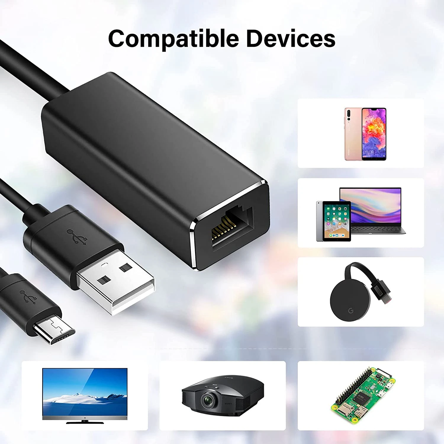 Notre Câble Micro USB vers port Ethernet RJ45 prend en charge une vitesse rapide de 10 / 100 Mbps. Il permet d’obtenir une connexion plus stable et plus fluide qu’avec une connexion en wifi 💖.