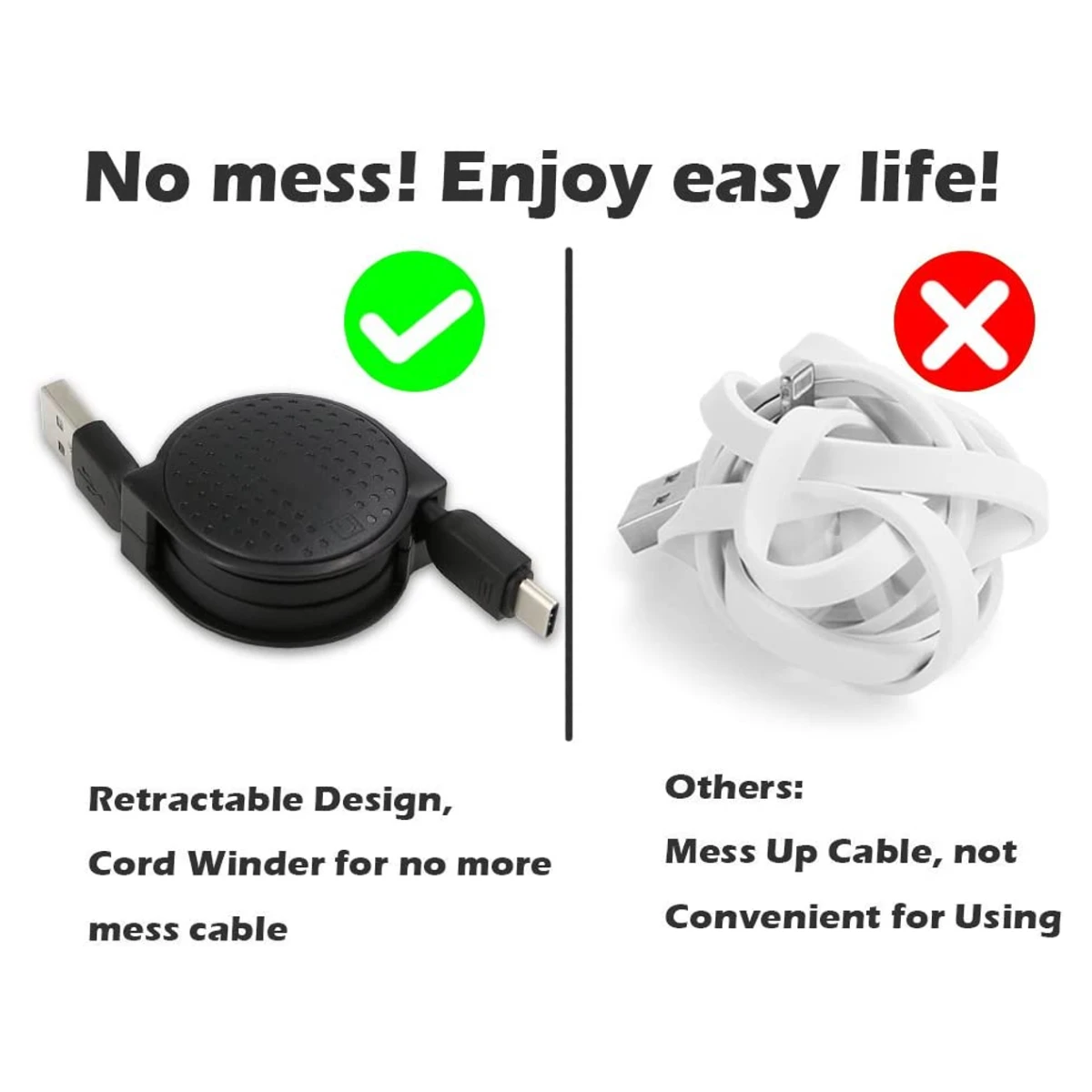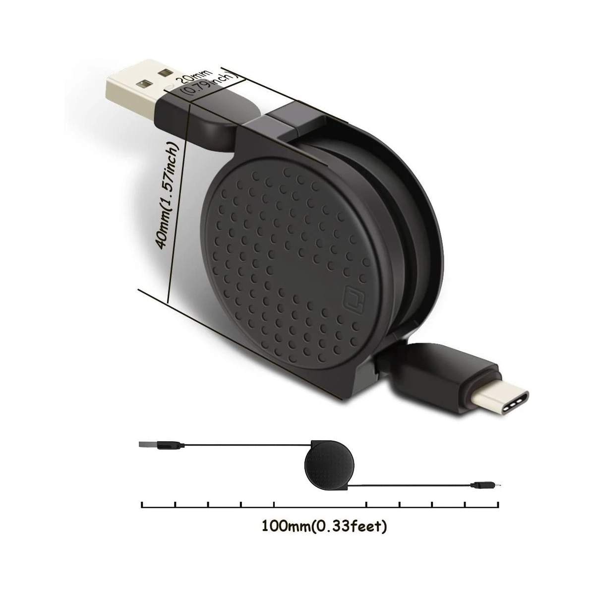 Notre Câble USB Type-C vers USB-A 3.0 est totalement rétractable et permet d’être enroulé complètement dans son étui afin de ne plus avoir à s’encombrer avec un long câble tout emmêle lorsqu’il est nécessaire de se déplacer avec 💖.