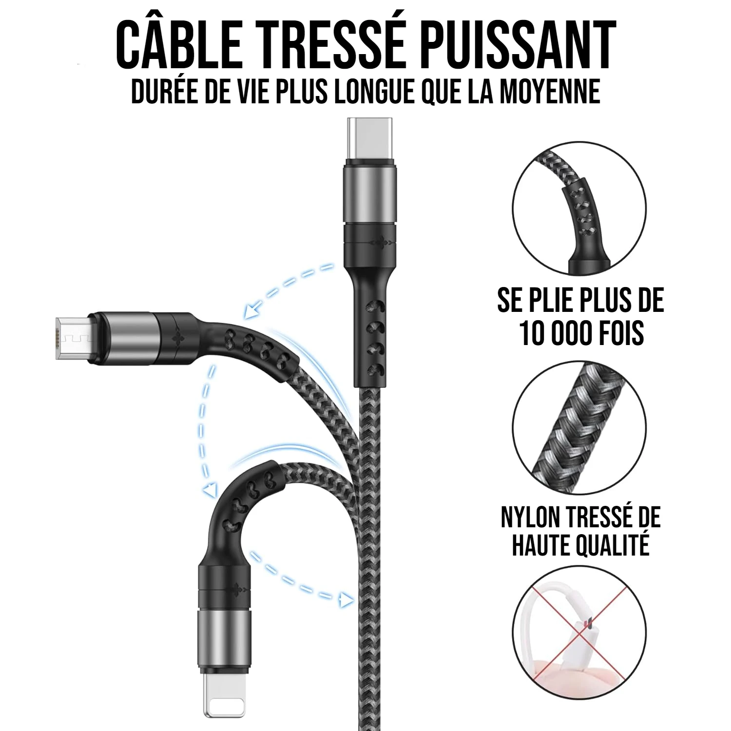 | Spécificité : Câble Tressé en Nylon | |