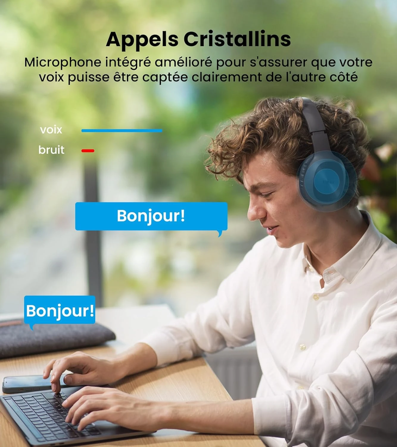 Optez pour notre Casque Bluetooth Drivers de 40mm pour une qualité sonore exceptionnelle, une autonomie prolongée et un confort absolu. Que vous soyez en déplacement, au bureau ou chez vous, vivez une expérience sonore immersive 🎵.