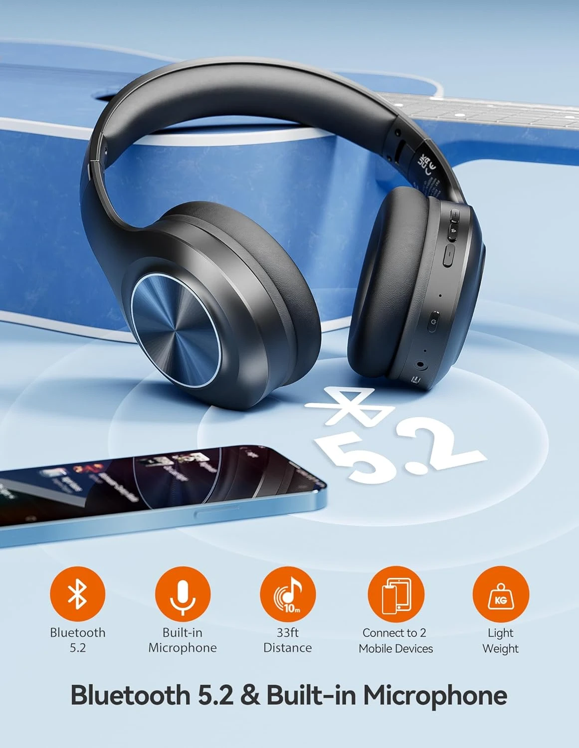 Bluetooth 5.2 et Microphone Intégré : Notre casque Bluetooth est équipé de la technologie Bluetooth 5.2, offrant une connexion stable, une latence réduite et une sortie audio de qualité. Le microphone intégré permet des appels téléphoniques mains libres et clairs, offrant une utilisation polyvalente ✨.