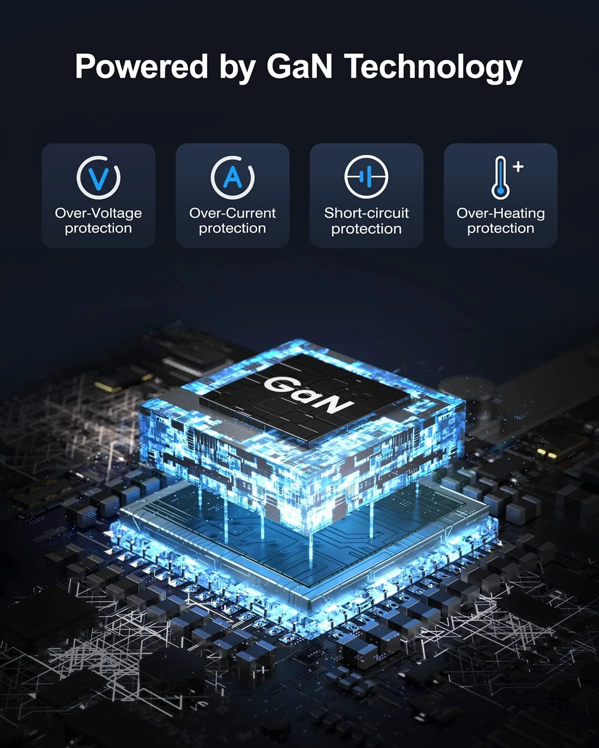 Grâce à la technologie de GaN Tech (nitrure de gallium), notre chargeur offre une efficacité de charge optimale tout en réduisant la consommation d’énergie. De plus, il est doté d’une puce intelligente qui assure une protection contre les surintensités, les surtensions, les surchauffes et les courts-circuits, garantissant la sécurité de vos appareils pendant la charge.