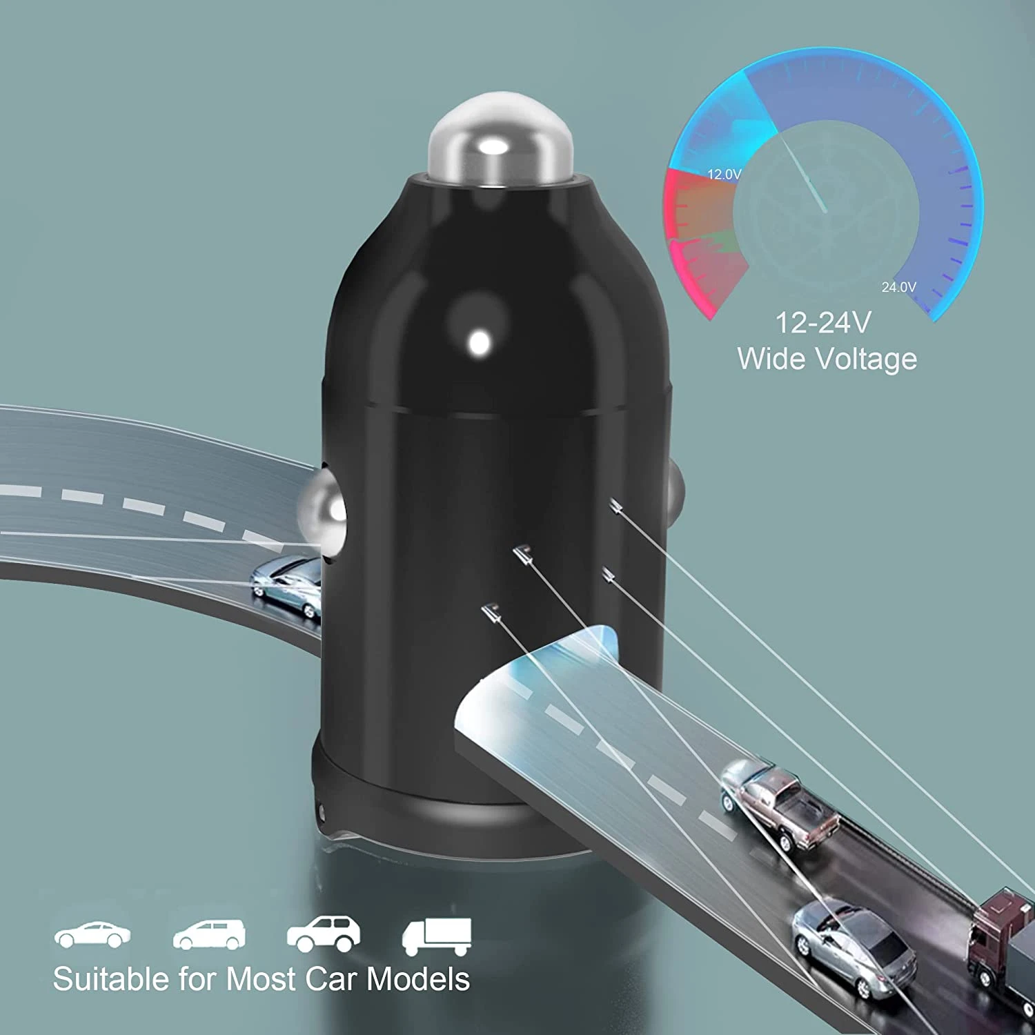 Chargeur de smartphone en voiture tension 12 à 24 volts