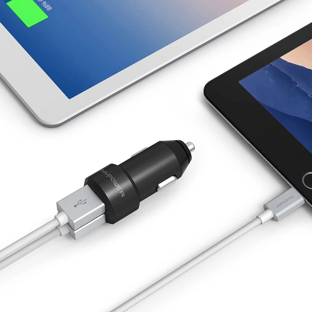 Découvrez dès maintenant notre chargeur allume cigare ultra compact et puissant . Pesant seulement 22.7 grammes et mesurant 5.9 centimètres de longueur le rendant ainsi super facile à transporter partout, il n’en est pas pour autant moins performant. Son double port USB lui permet de charger deux appareils simultanément à une vitesse de 2.4 Ampères chacun, allié avec la technologie iSmart, il permet de recharger rapidement votre smartphone et recharge par exemple complètement un iPhone X en seulement 2.2 heures (plus de détails image n°3) .